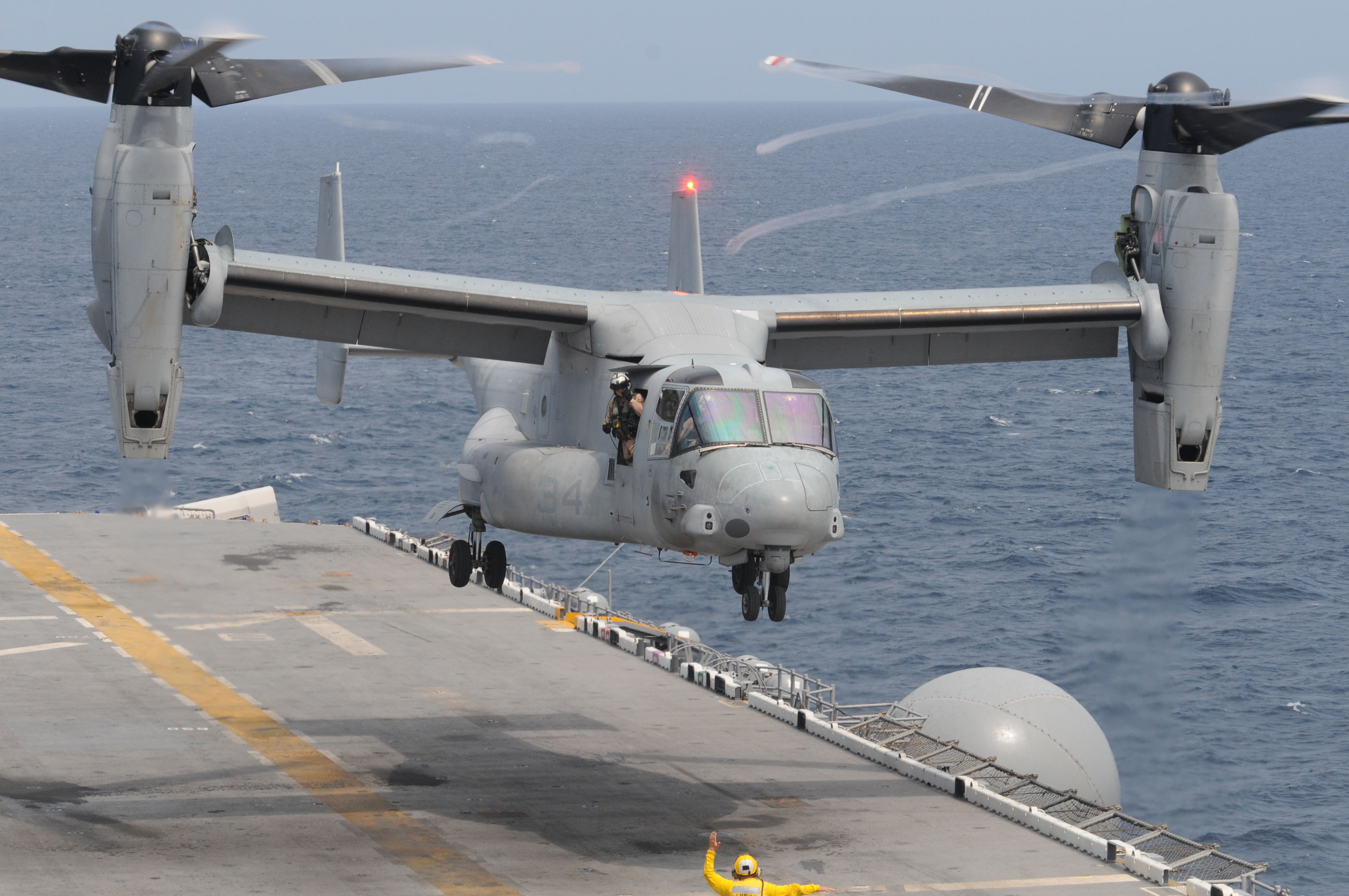 307k | An MV-22 Osprey lands on the flight deck of the USS Wasp (LHD-1). Wasp is deployed with the Wasp Amphibious