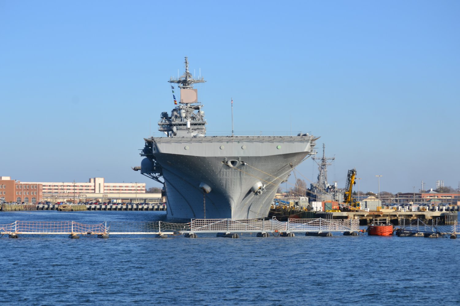 199k | USS Wasp (LHD-1) moored at Naval Station Norfolk, VA., 29 November 2012. US Navy photo. |