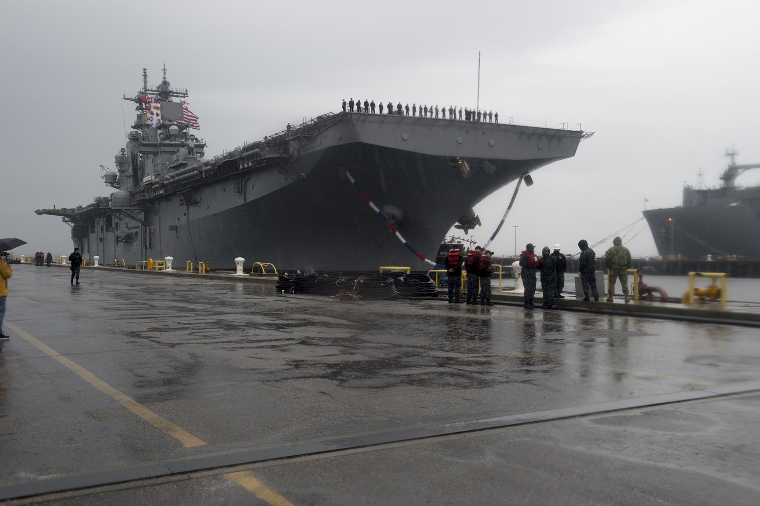 151k | USS Wasp (LHD-1) arrives at Naval Station Norfolk as part of the Wasp Amphibious Ready Group (WASP ARG) following a six-month deployment in support of maritime security operations and theater security cooperation efforts in Europe and Middle East. WSP ARG includes Commander, Amphibious Squadron 6; USS Wasp (LHD-1); USS San Antonio (LPD-17); USS Whidbey Island (LSD-41) and 22nd Marine Expeditionary Unit (MEU). US Navy photo #'s 161224-N-XQ474-158 NORFOLK (Dec. 24, 2016) by MC2 Andrew Schneider and 161224-N-OH194-040 NORFOLK (Dec. 24, 2016) by MC1 Grant P. Ammon |