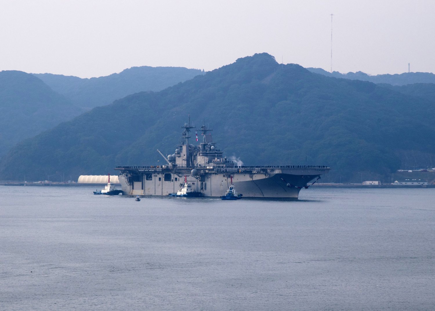 217k | USS Wasp (LHD-1) arriving at Fleet Activities Sasebo, Japan. Wasp, capable of operating the U.S. Marine Corps F-35B
