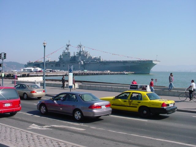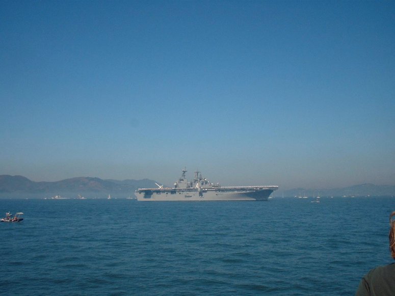 49k | USS Boxer (LHD-4) leading the parade of ships under the Golden Gate Bridge into San Francisco Bay during Fleet Week, October 2002. | Roy Thomas | |