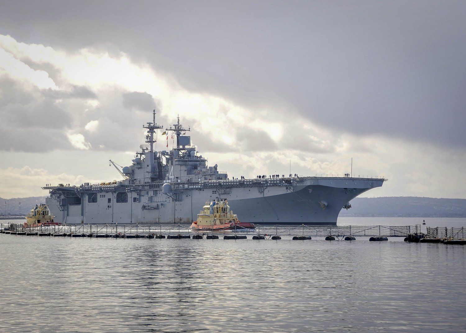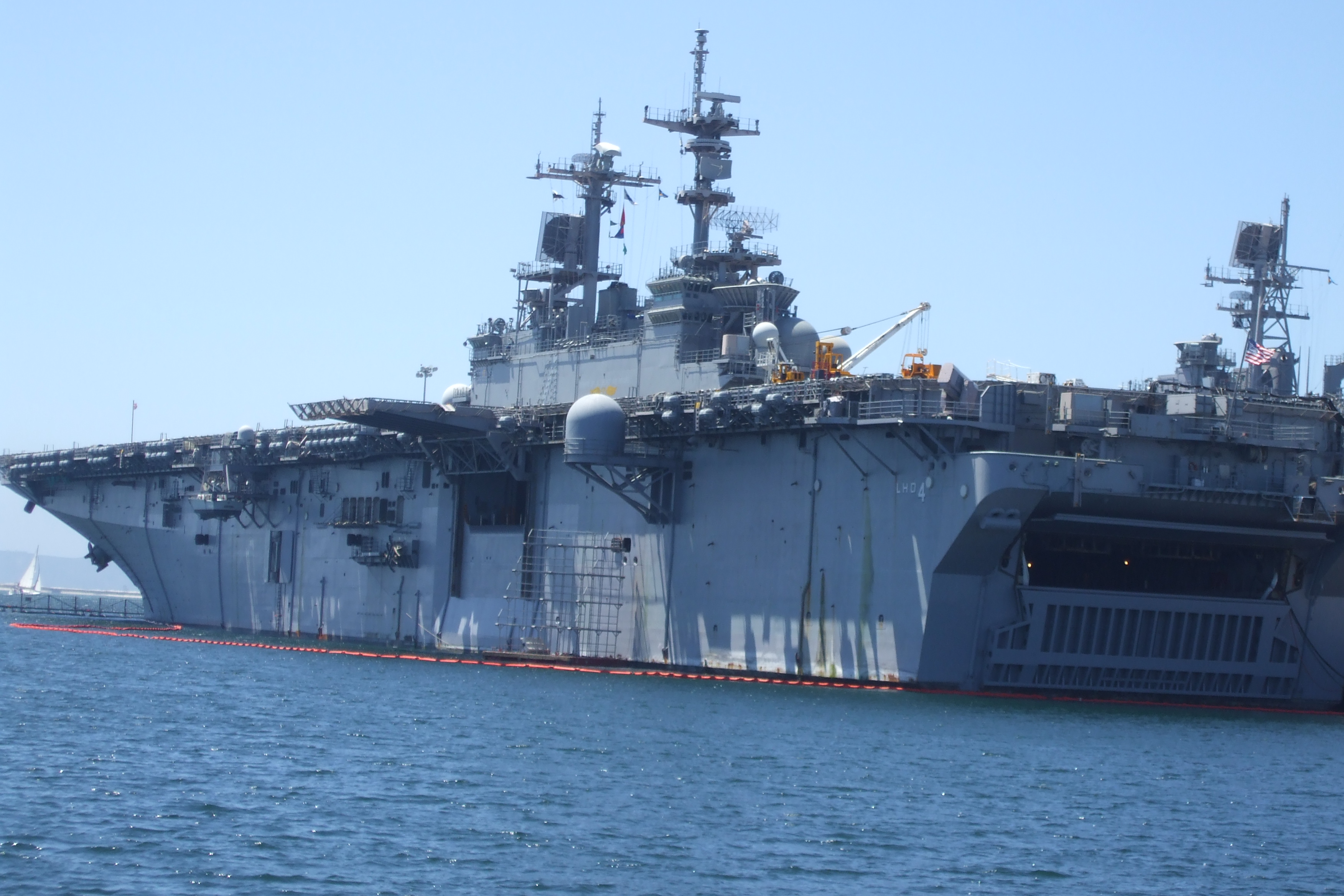 224k | USS Boxer (LHD-4) under way in San Diego Bay outbound to sea. Boxer is under way conducting routine operations off the