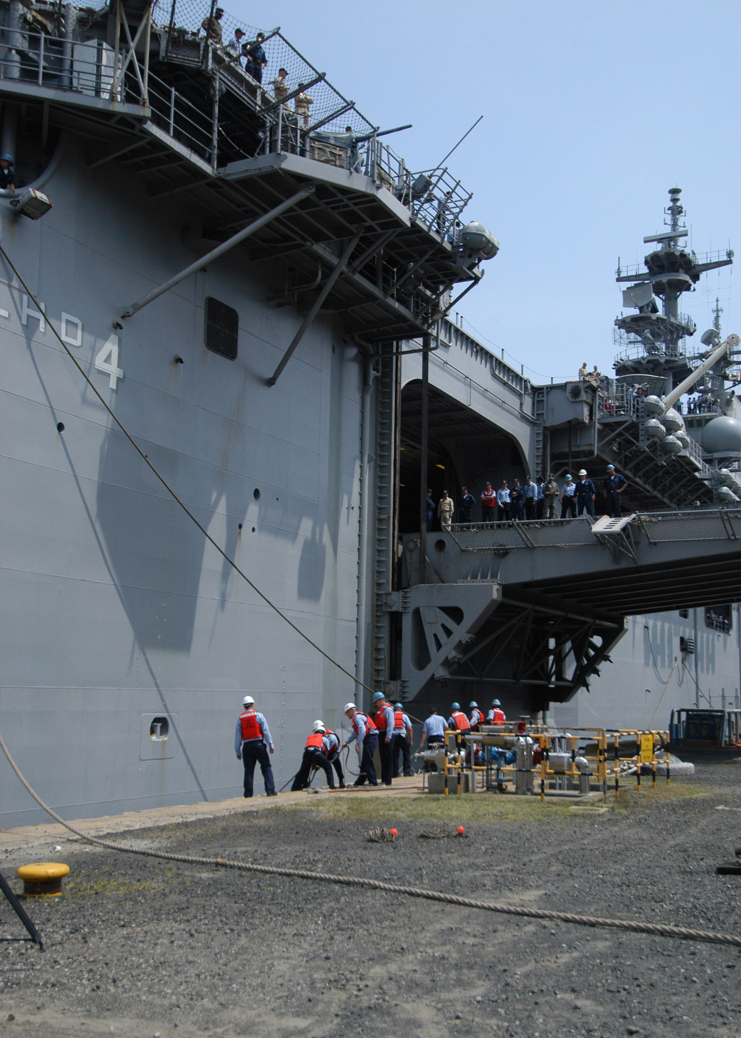 74k | USS Boxer (LHD-4) moored astern of USS John Paul Jones (DDG-53) at Fort Hill Wharf, Darwin, Australia, 3 June 2005. Official Royal Australian Navy photo. | Bill Gonyo | |