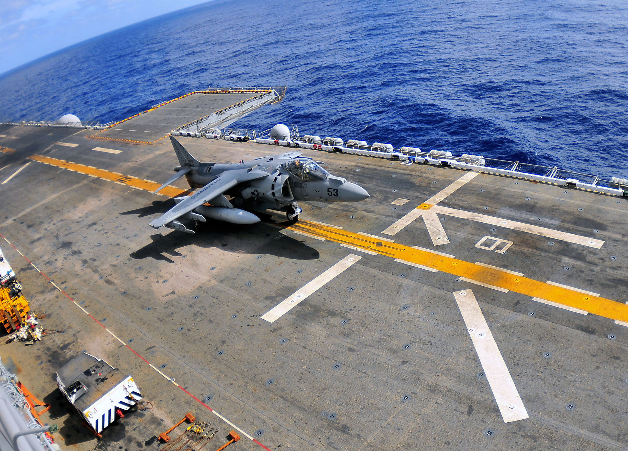 778k | An AV-8B Harrier II jump-jet assigned to the 13th Marine Expeditionary Unit (13 MEU)