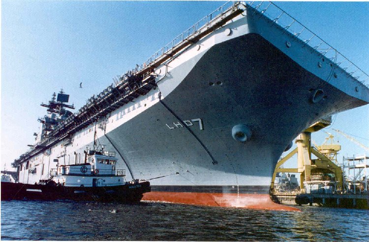 108k | Iwo Jima (LHD-7) being moved to her fitting out dock. US Navy photo |