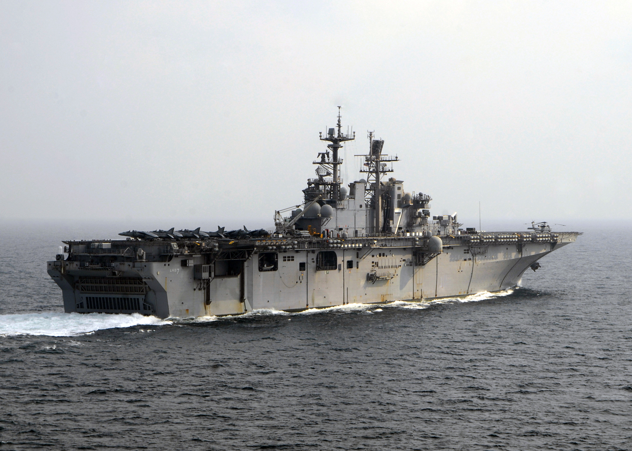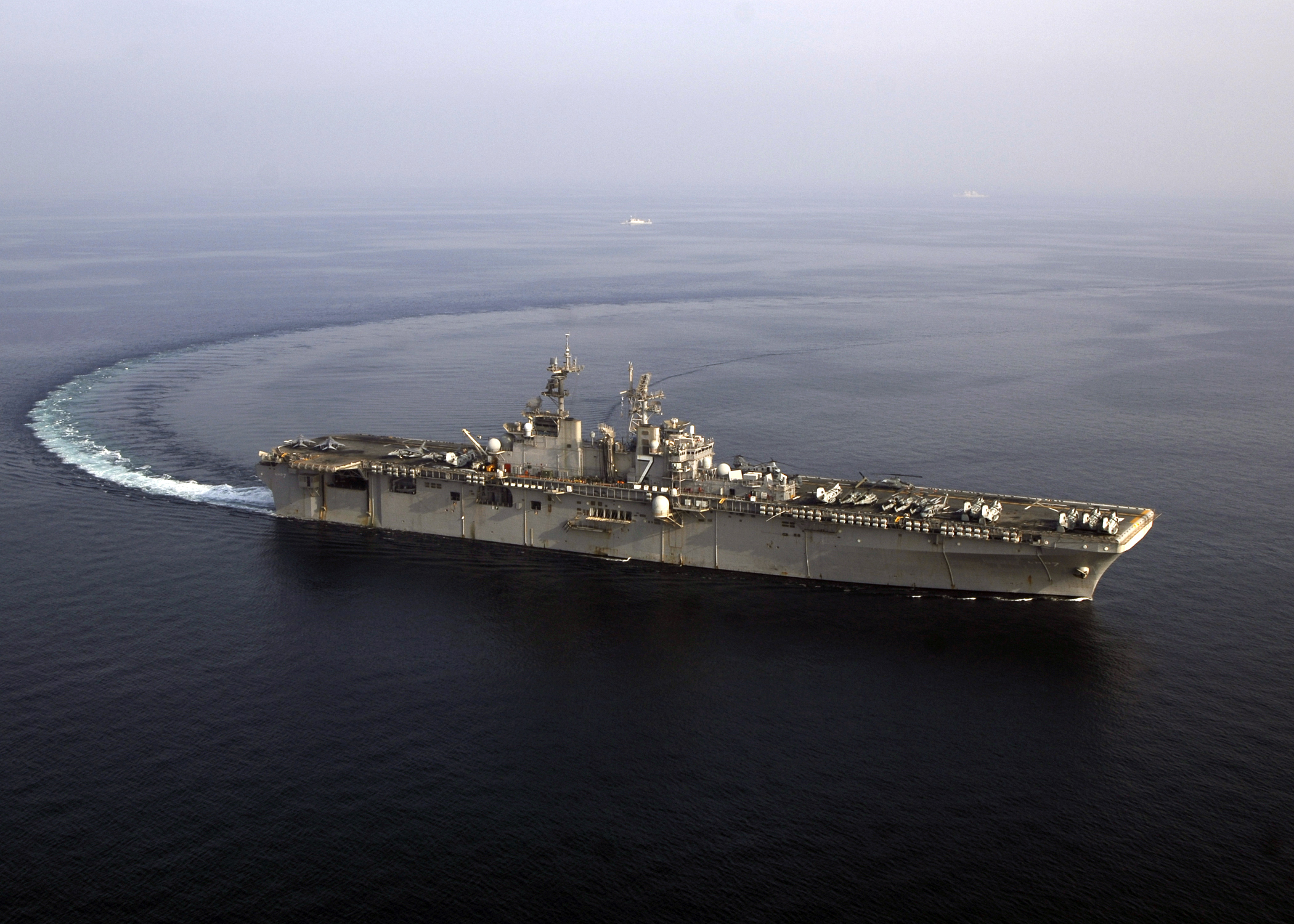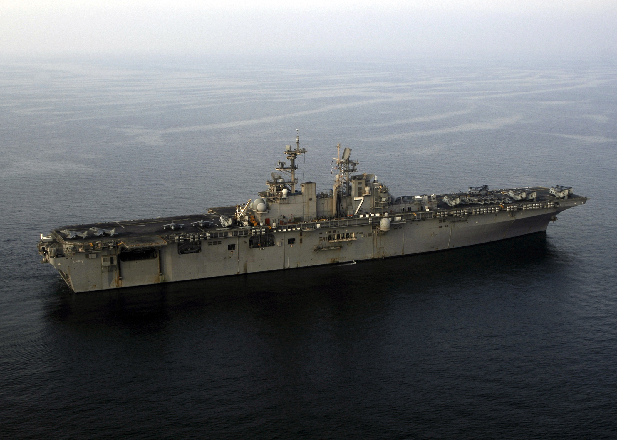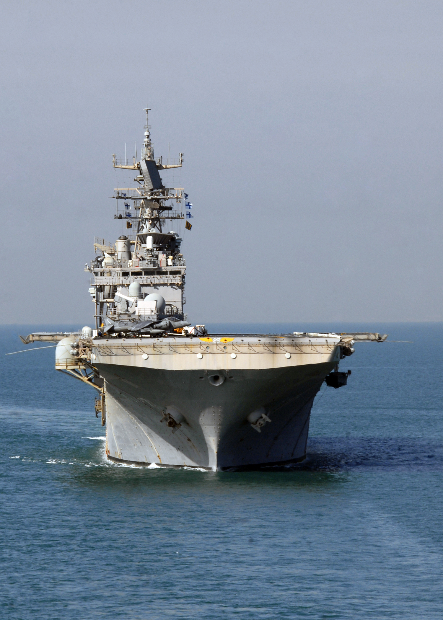 USS Iwo Jima (LHD-7) under way in the U.S. 5th Fleet area of operations. Iwo Jima is homeported in Mayport, FL.,
