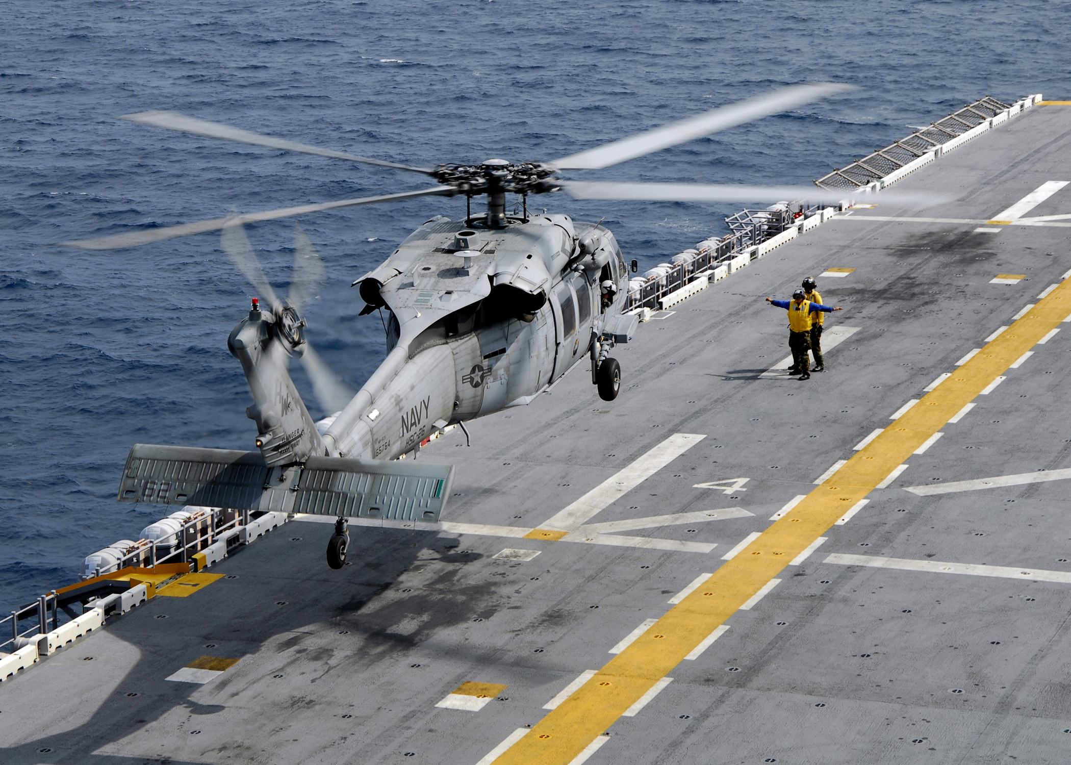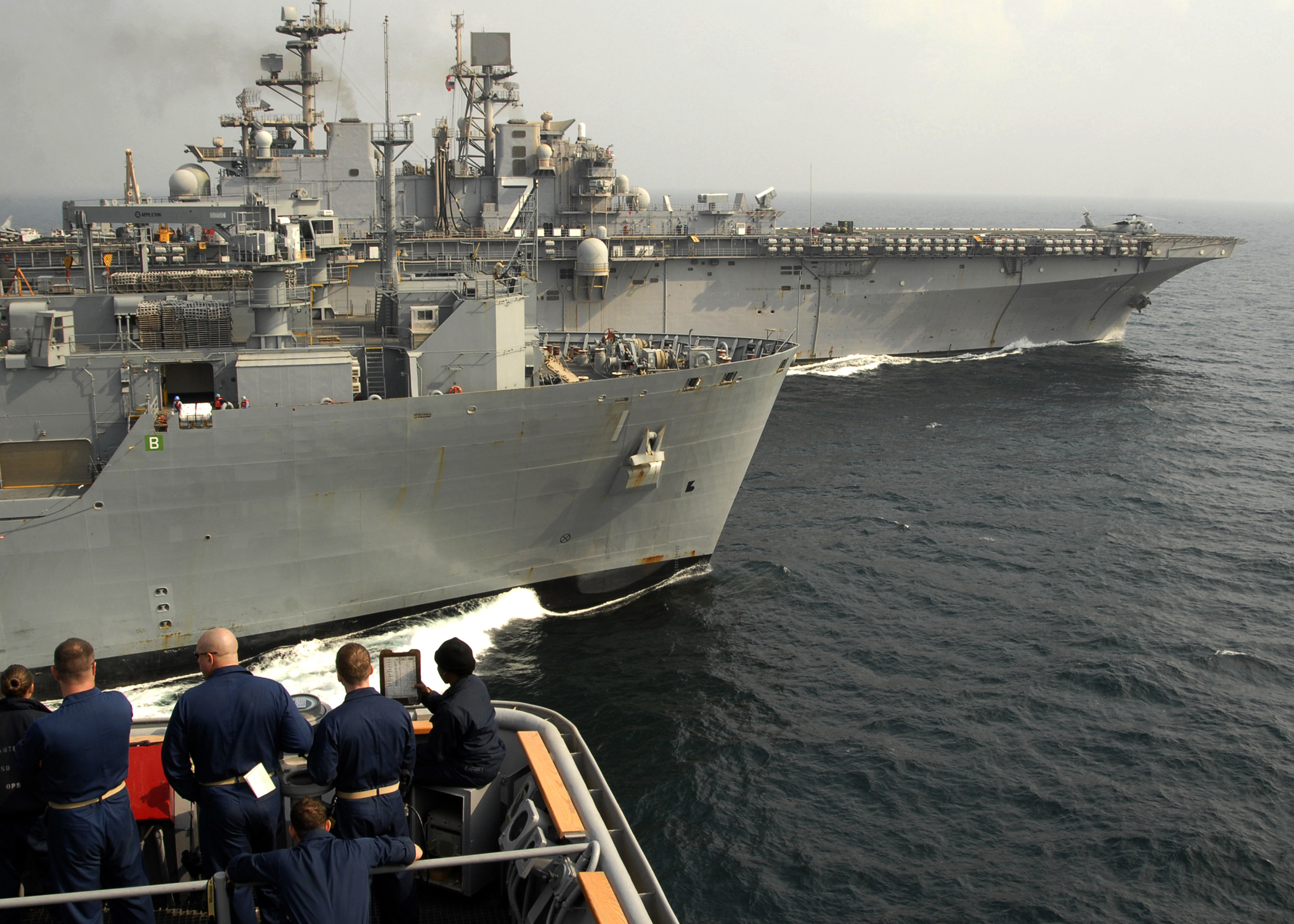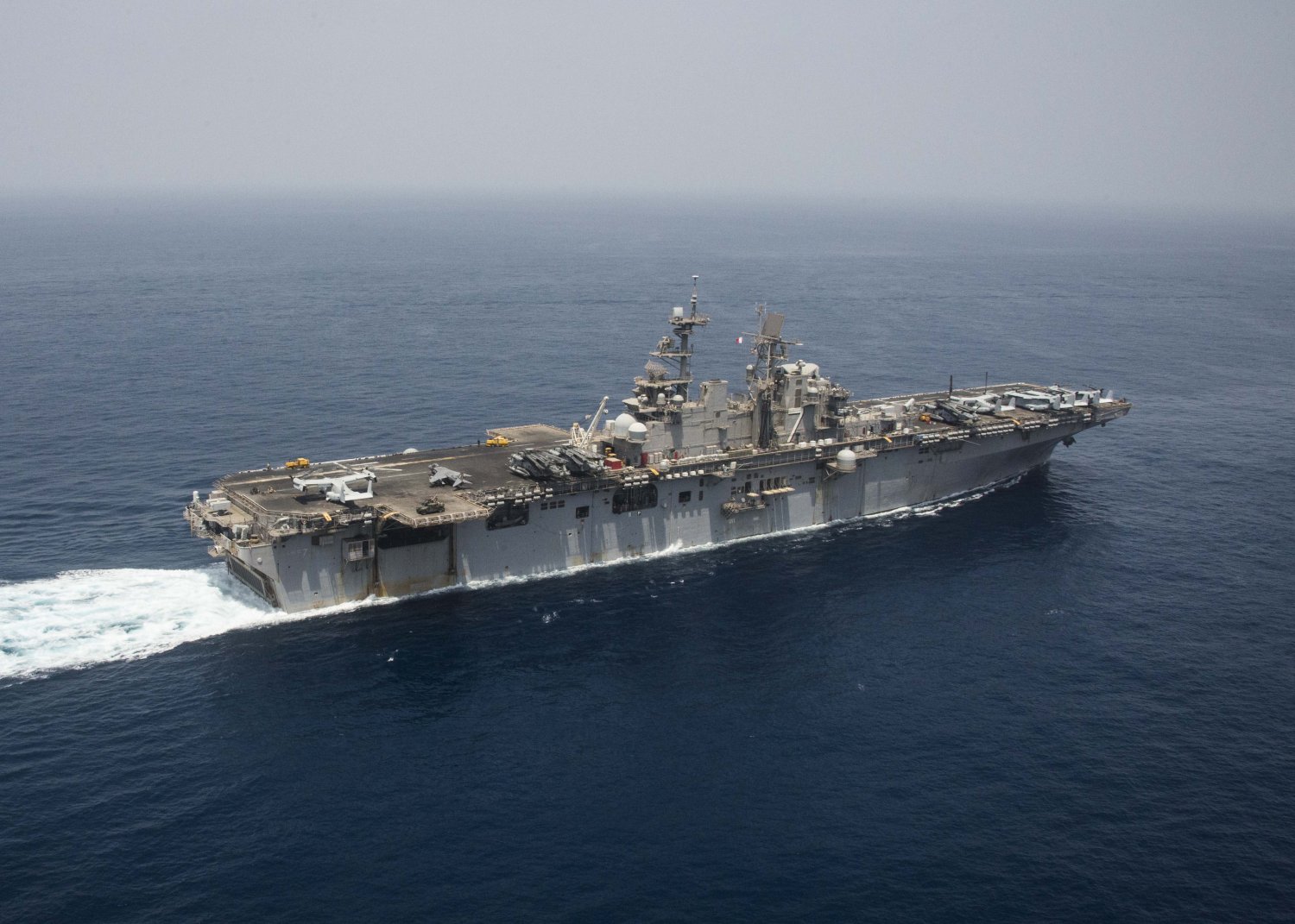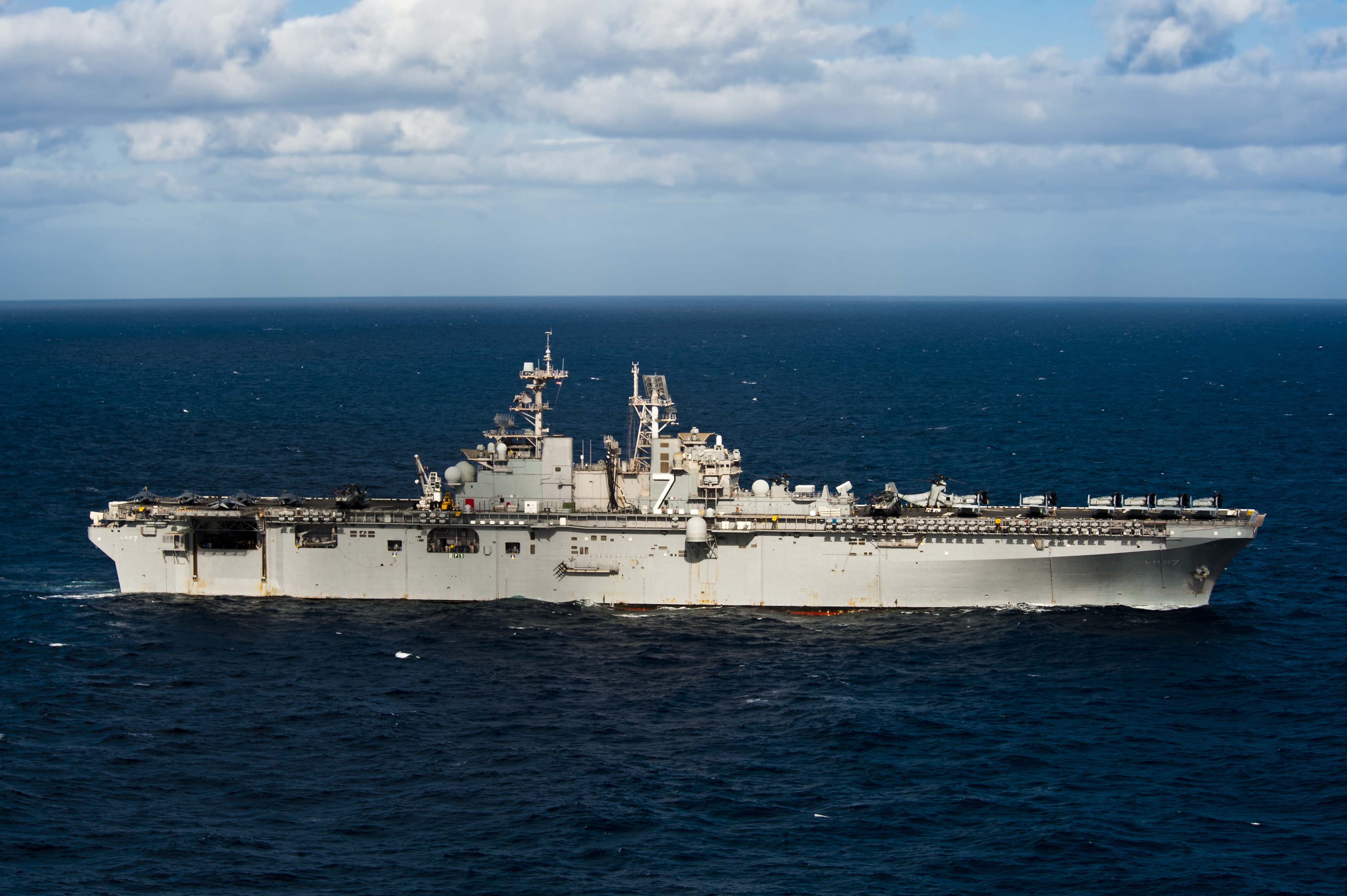USS Iwo Jima (LHD-7) under way in the U.S. 5th Fleet area of operations. Iwo Jima is homeported in Mayport, FL.,