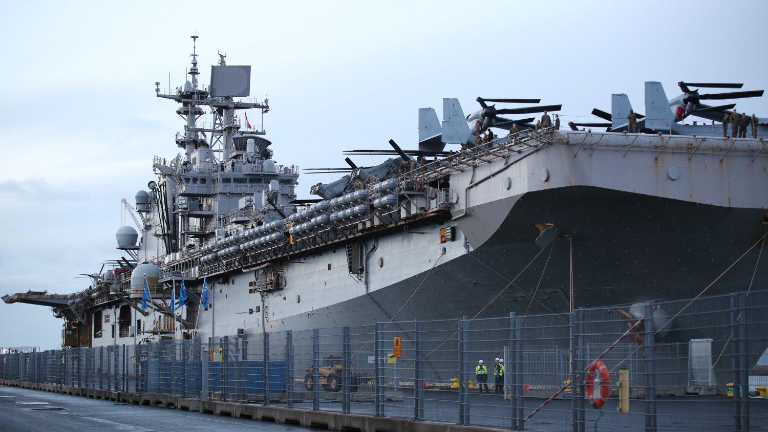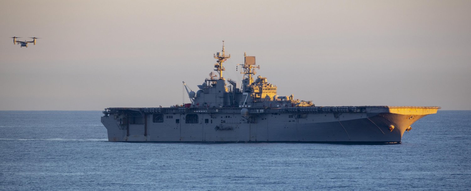 embarks the 26th Marine Expeditionary Unit (MEU) and includes Iwo Jima, the amphibious transport dock ship
