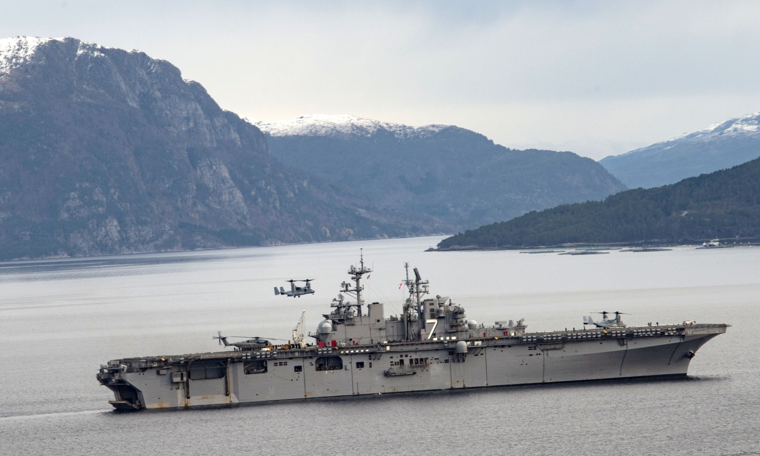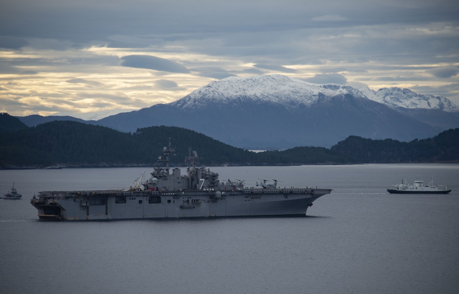 USS Iwo Jima (LHD-7) under way in Alvund Fjord, 31 October 2018. Iwo Jima is currently participating
