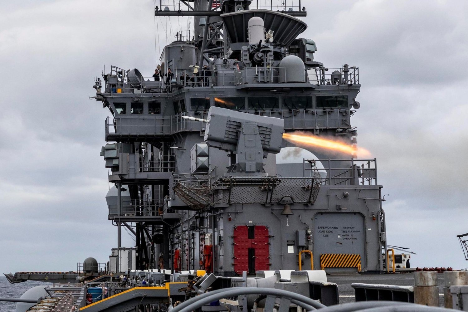 A rolling airframe missile is fired USS Iwo Jima (LHD-7), 18 October 2020, during Surface Warfare Advanced Tactical Training (SWATT).
