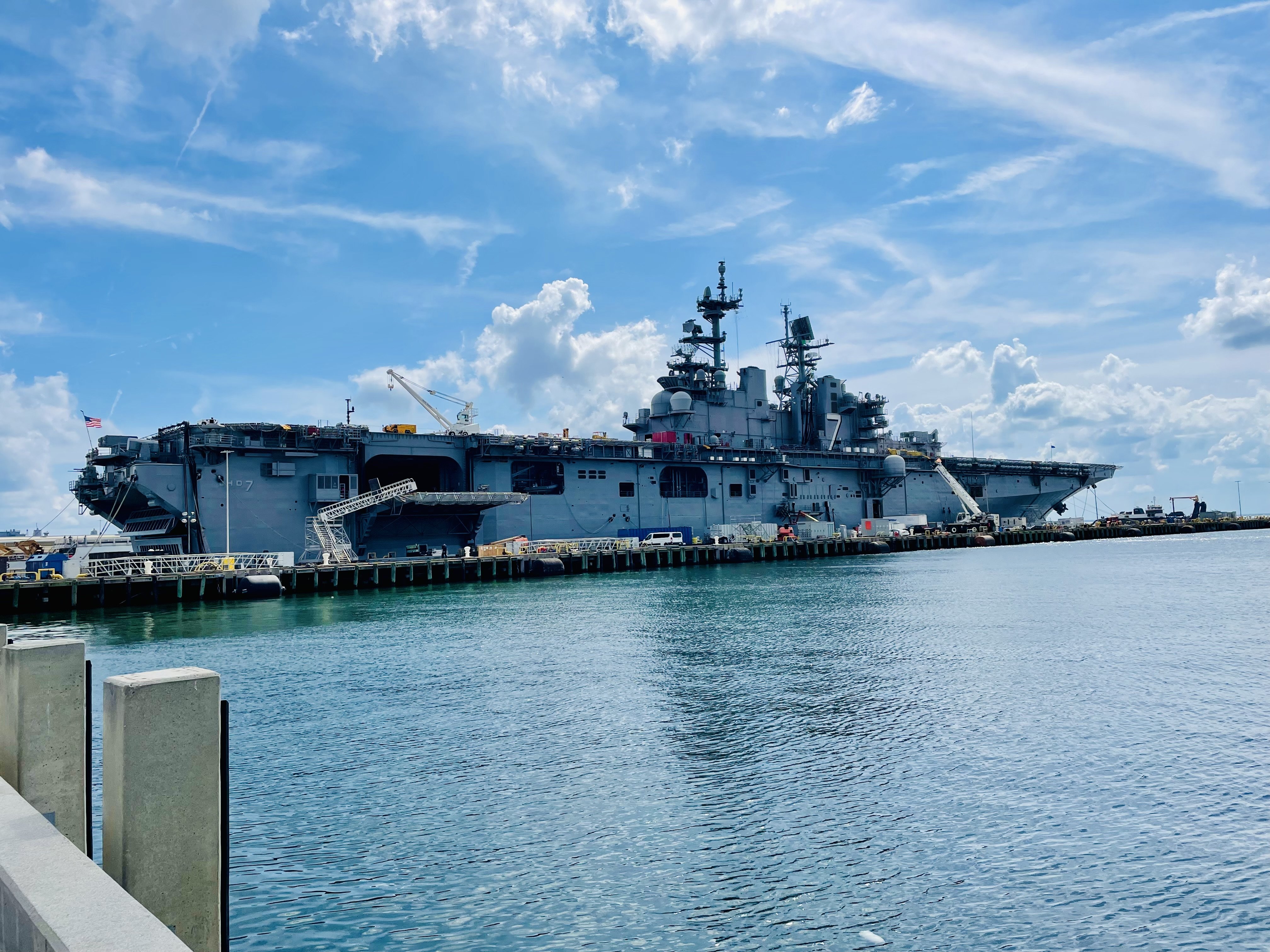 USS Iwo Jima moored pierside at Naval Station Mayport, FL., circa August 2016. |