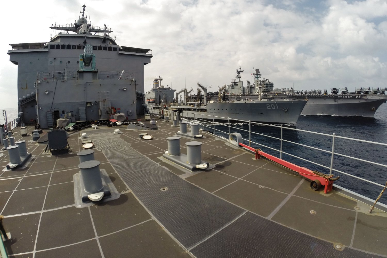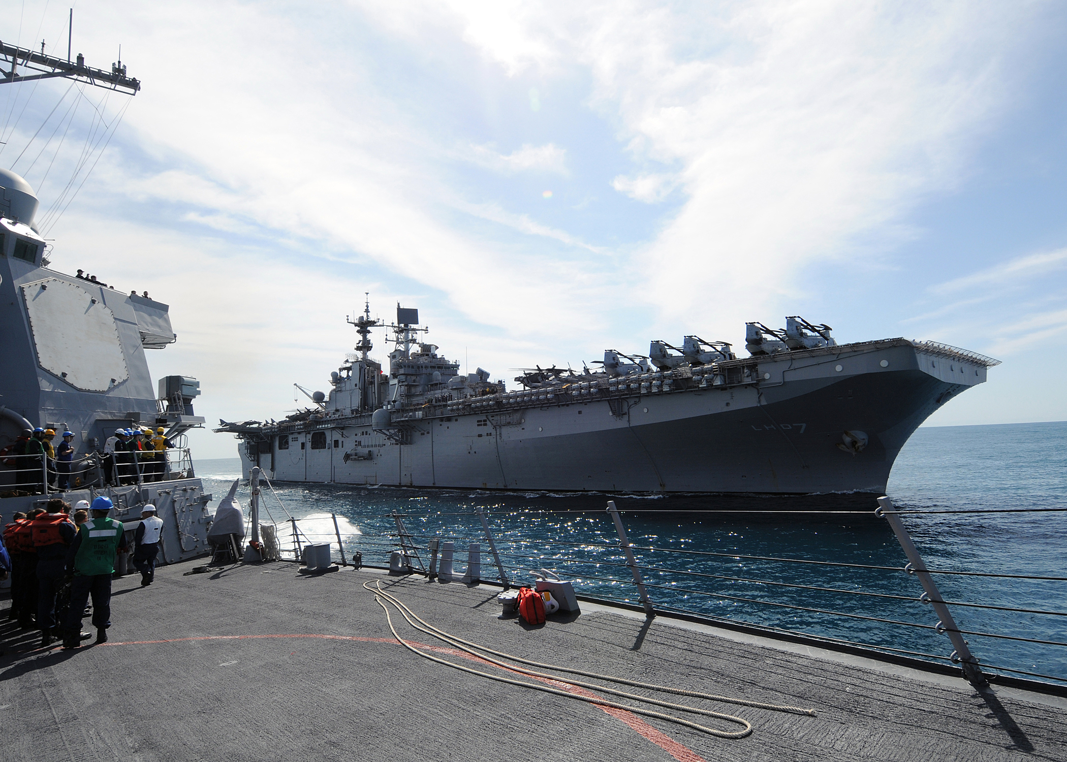 and the amphibious dock landing ship USS Fort McHenry (LSD-43). Fort McHenry part of the Iwo Jima Amphibious Ready Group, is participating in exercise Eager Lion 2015,