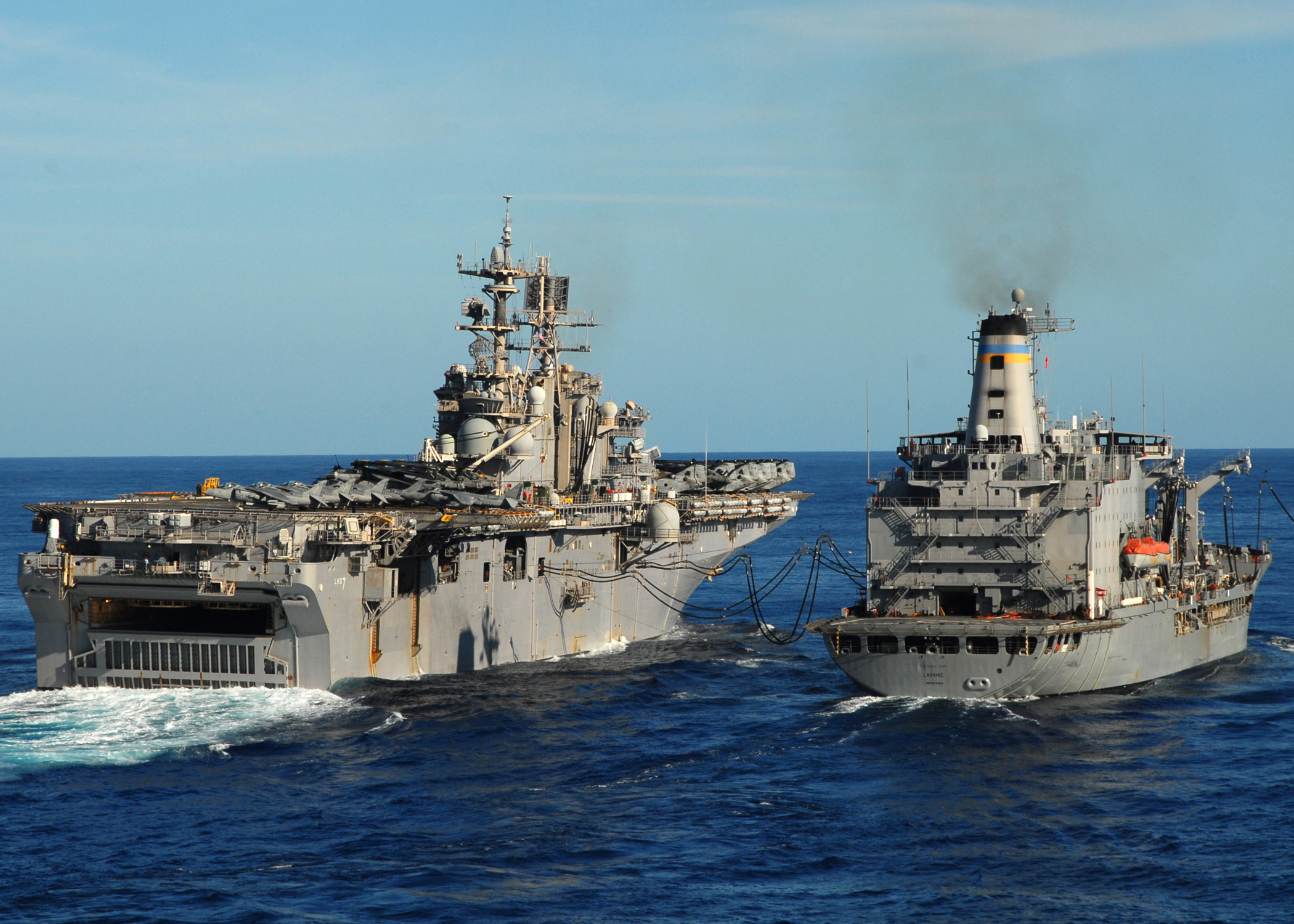 USS Iwo Jima (LHD 7) pulls away after a replenishment at sea with the guided-missile destroyer USS Ramage (DDG-61), 14 May 2008. Iwo Jima and Ramage are participating in the Iwo Jima Expeditionary Strike Group integration training. |