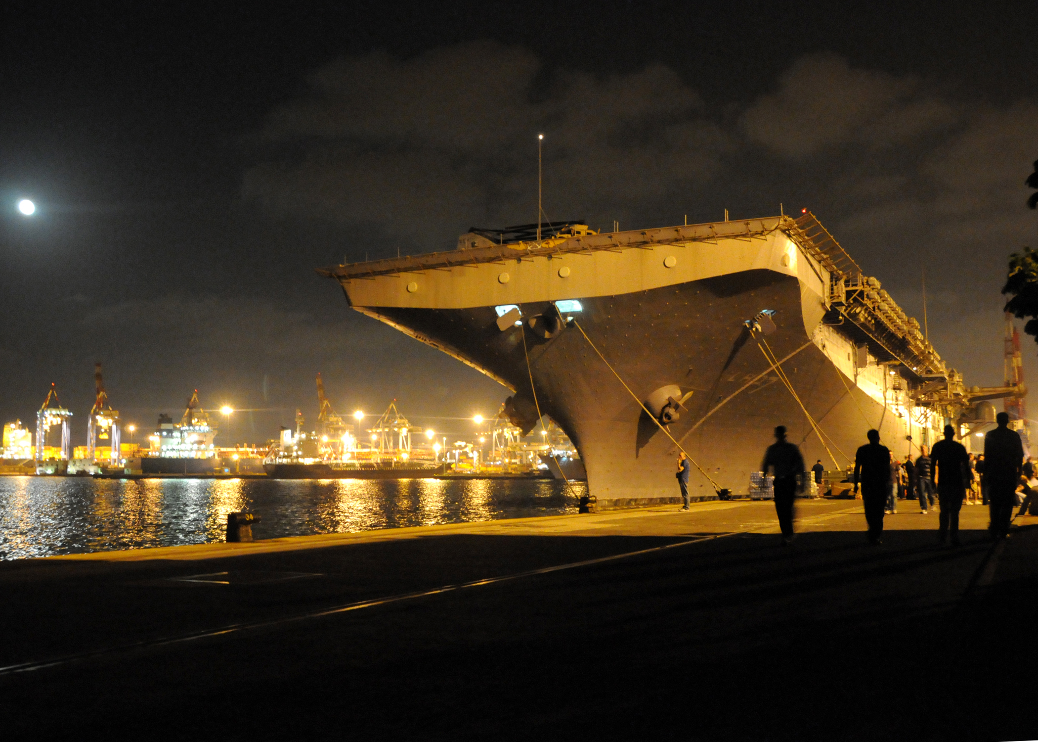 USS Iwo Jima (LHD-7) moored pierside in a German port during a routine port visit, 7 August 2006 |