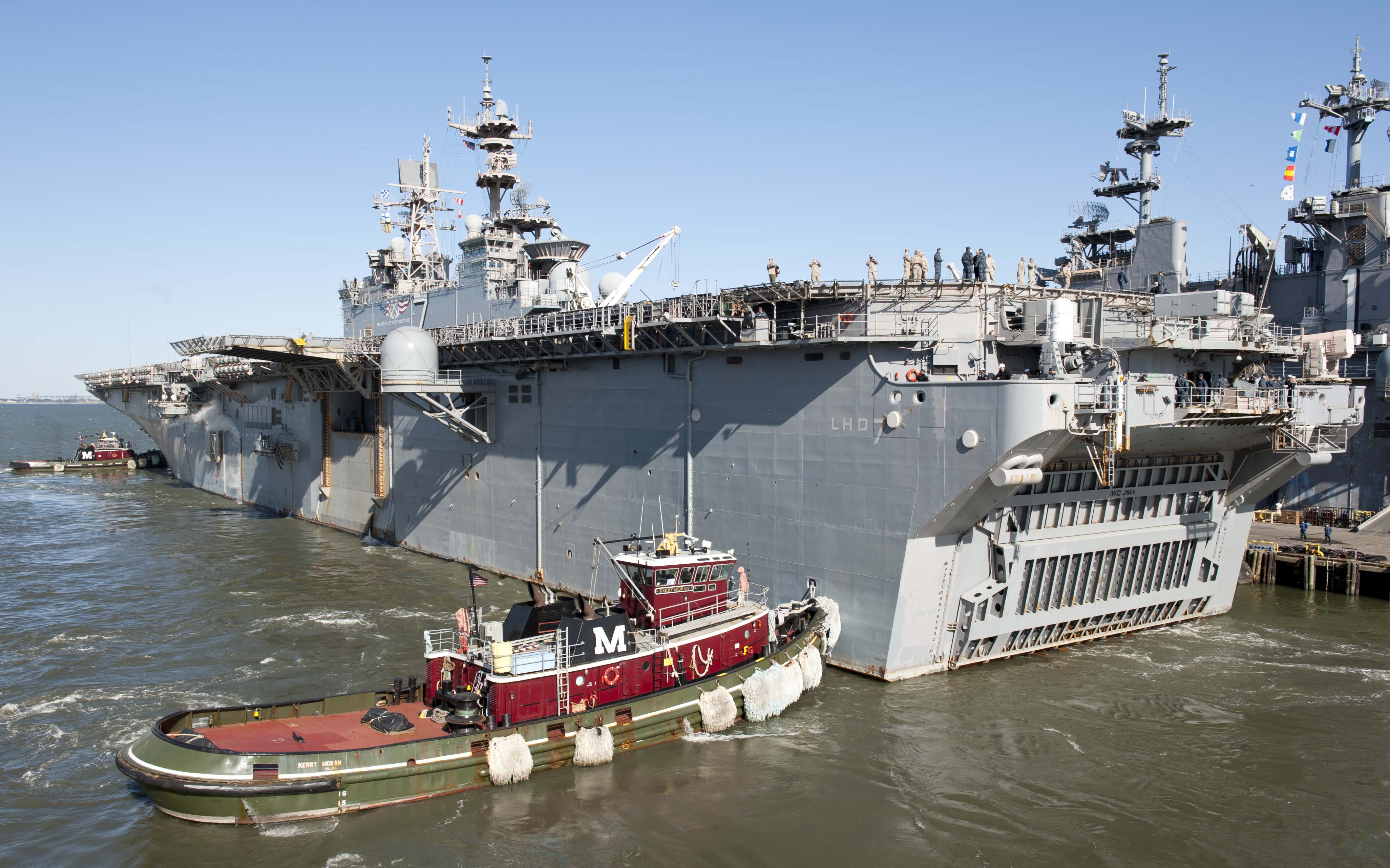 USS Iwo Jima (LHD-7) prepares to dock at Naval Station Norfolk to disembark the