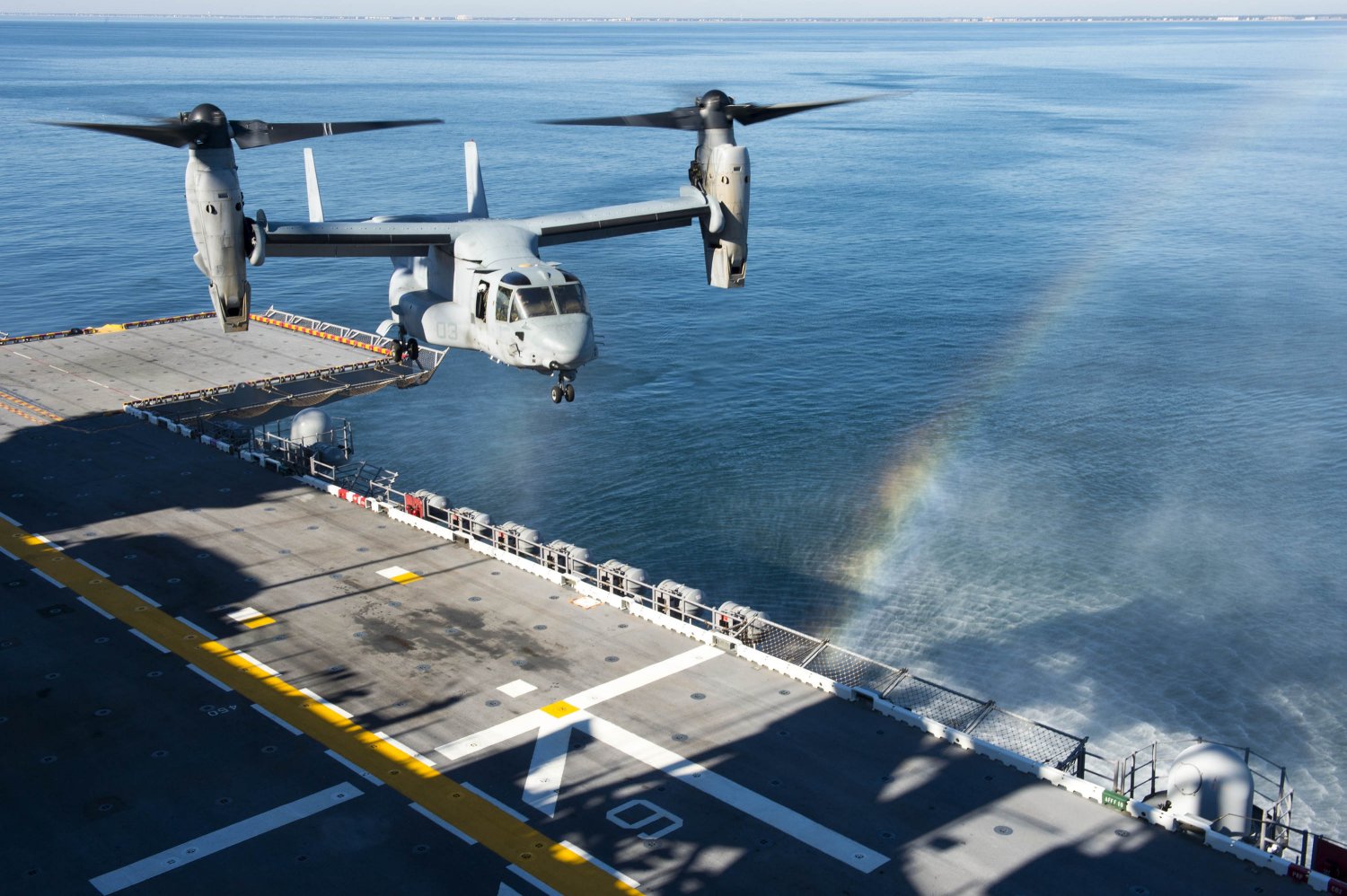 An MV-22 Osprey, attached to Marine Medium Tiltrotor Squadron