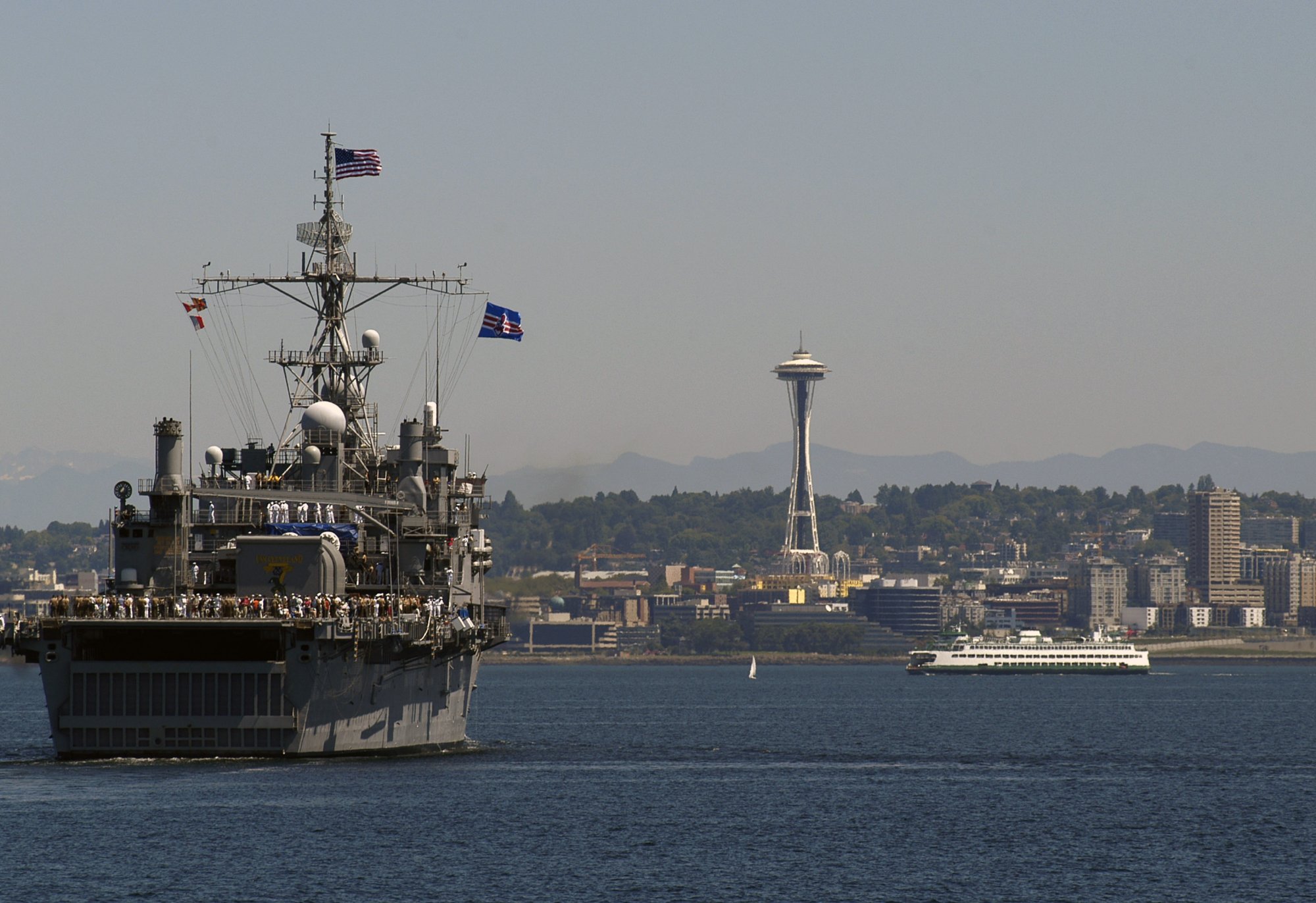 371k | USS Cleveland (LPD-7) transits through Puget Sound during Seattle Seafair 2007 on 1 August 2007. US Navy photo # 070801-N-3390M-002 SEATTLE (Aug. 1, 2007) by MC2 Douglas G. Morrison. |