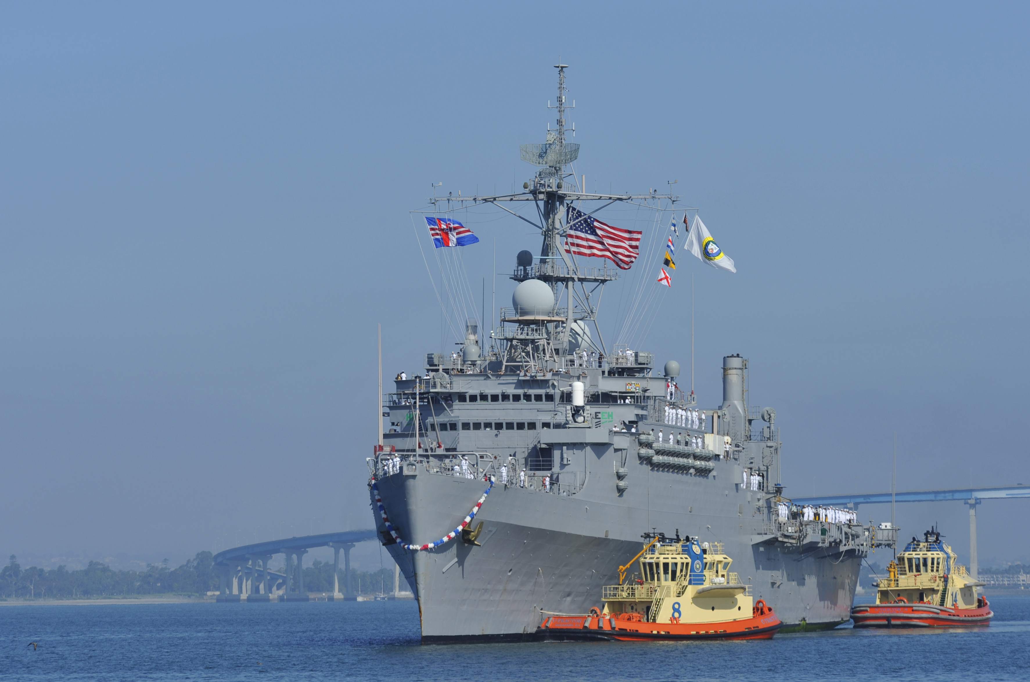 2190k | USS Cleveland (LPD-7) returns to San Diego after a five-month deployment as part of the Pacific Partnership 2011 humanitarian mission. US Navy photo # 110804-N-KS651-097 SAN DIEGO (Aug. 4, 2011) by MC2 Jason Behnke.. |