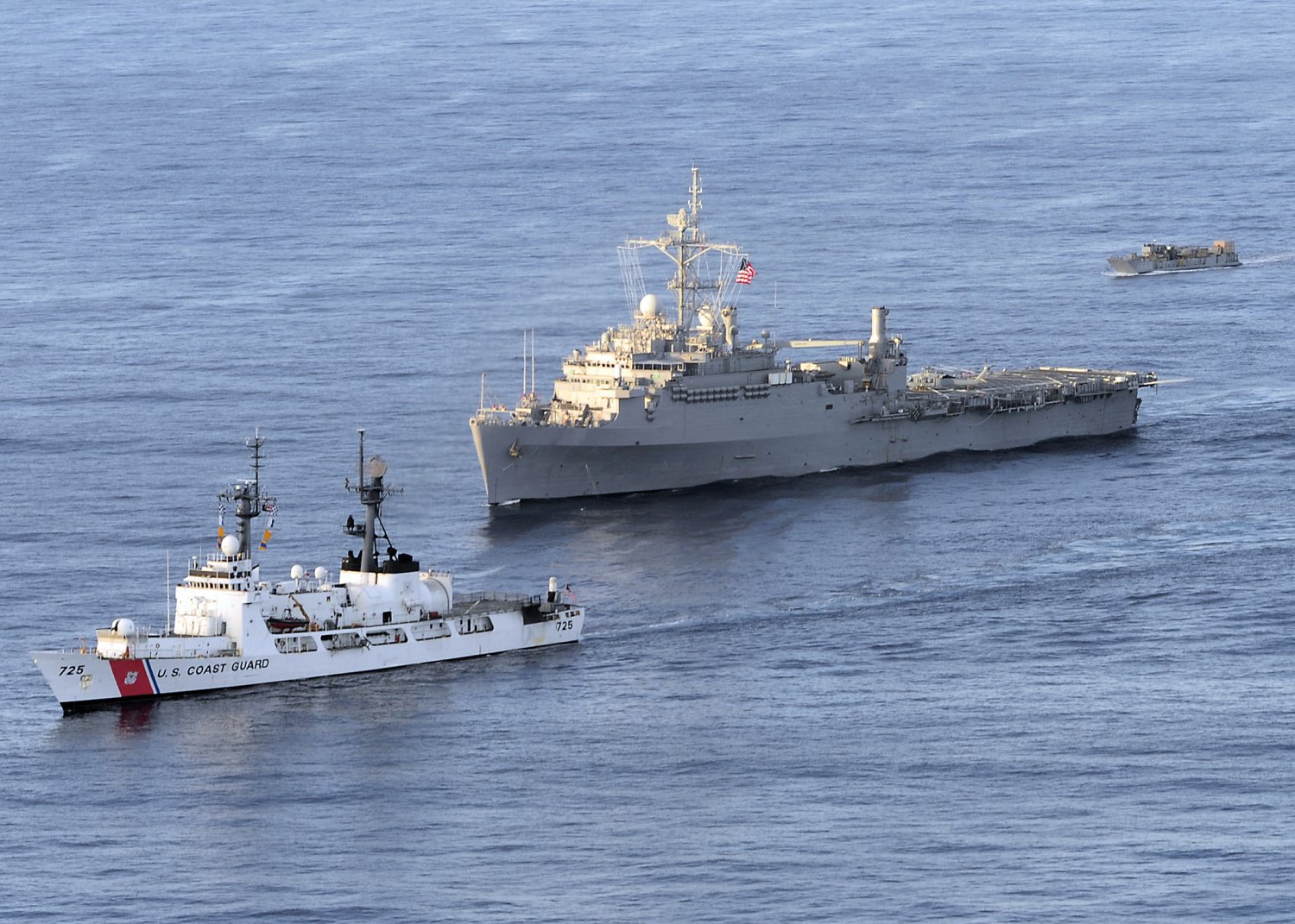 327k | U.S. Coast Guard cutter USCGC Jarvis (WHEC-725), front, USS Cleveland (LPD-7) and