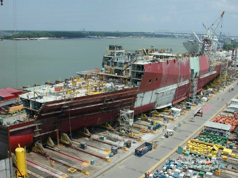 483k | San Antonio (LPD-17) under construction on her building ways at Northrop Grumman Ship Systems, Avondale, LA. US Navy photo # 030213-N-0000N-002 New Orleans, La. (Feb. 13, 2003). |