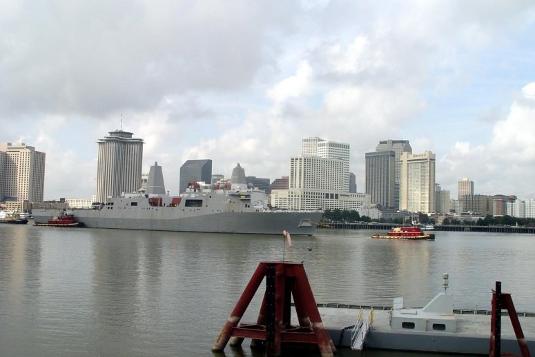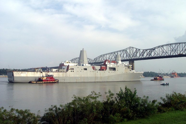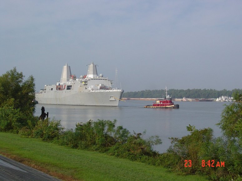 74k | San Antonio (LPD-17) being towed from Avondale Shipyard New Orleans to NGSS Pascagoula, MS., 23 October 2004. | Ed Izzi | |