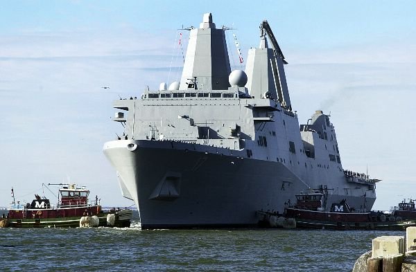 311k | USS San Antonio (LPD-17) returns to Naval Station Norfolk after completing the second phase of a two-part series of sea trials. The sea trials evaluated shipboard systems and developed crew proficiency. US Navy photo # 110615-N-ZZ999-001 NORFOLK (June 15, 2011) . |