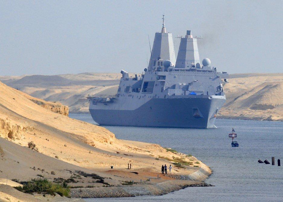 100k | USS San Antonio (LPD-17) transits the Suez Canal in 2008. US navy photo. |