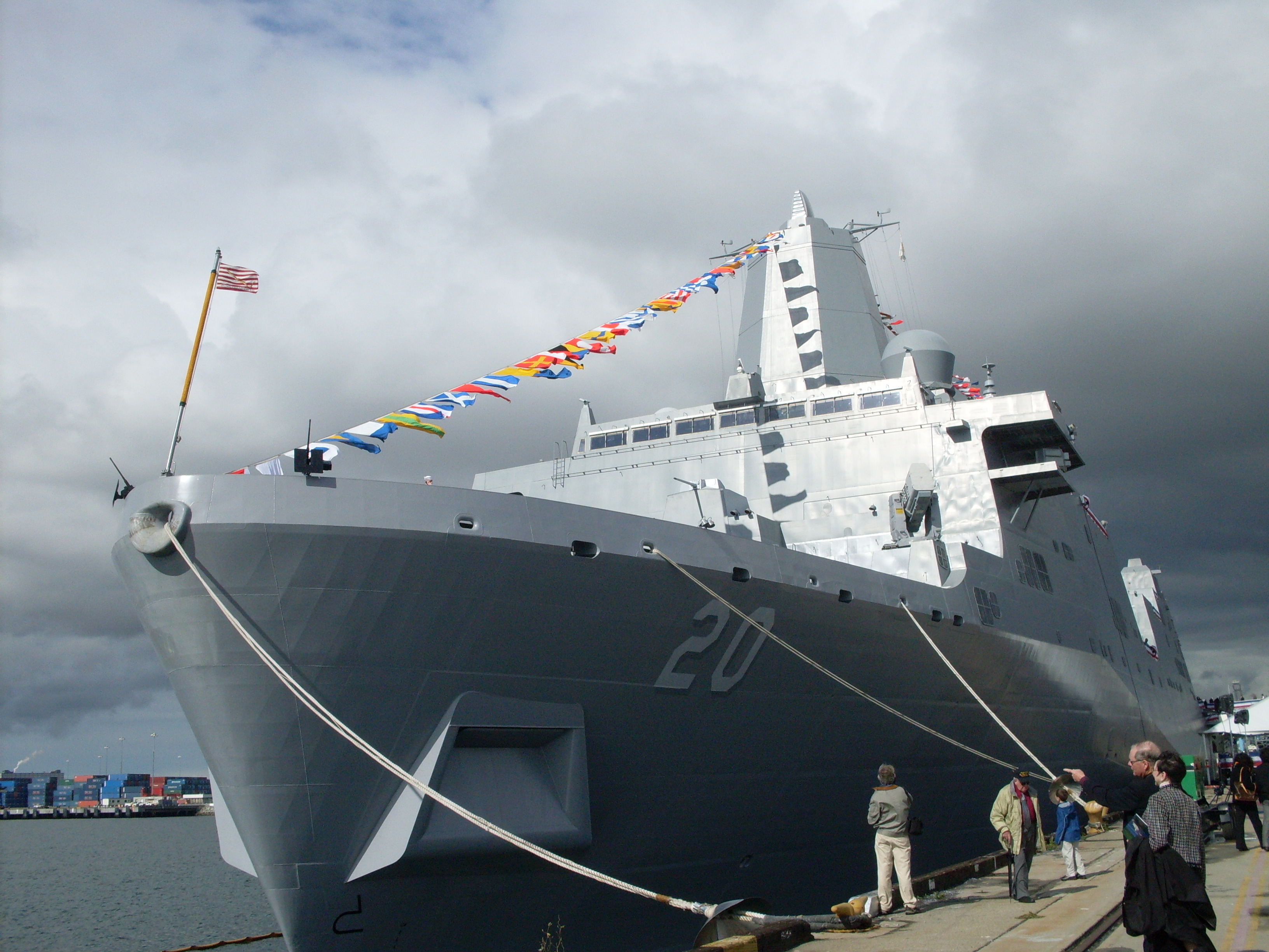 View of PCU Green Bay (LPD-20)'s port quarter while moored at the ex Long Beach Naval Shipyard awaiting commissioning. |