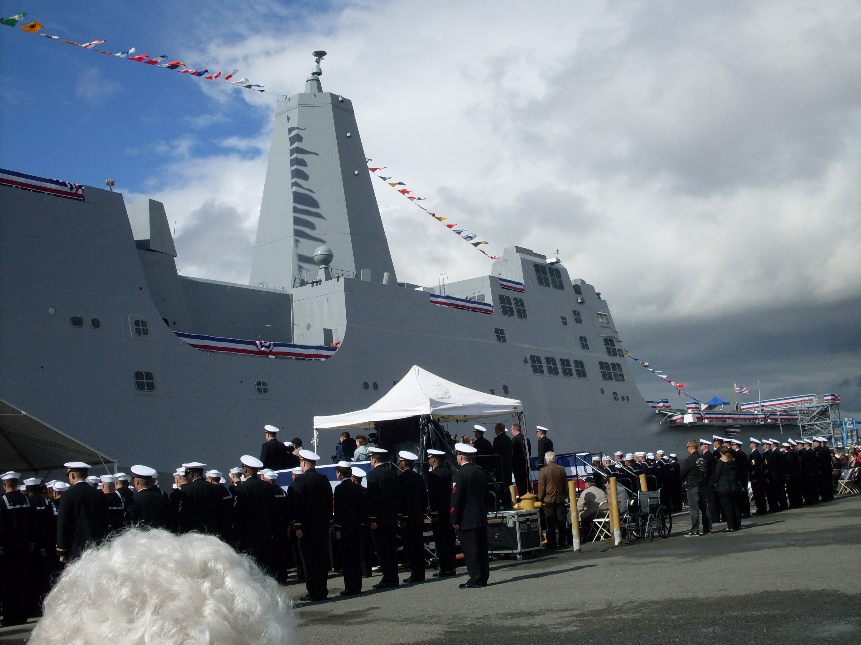 Assistant Secretary of Defense Gordon English arrives for the commissioning of PCU Green Bay (LPD-20), at the ex-Long Beach Naval Shipyard, 24 January 2009. |