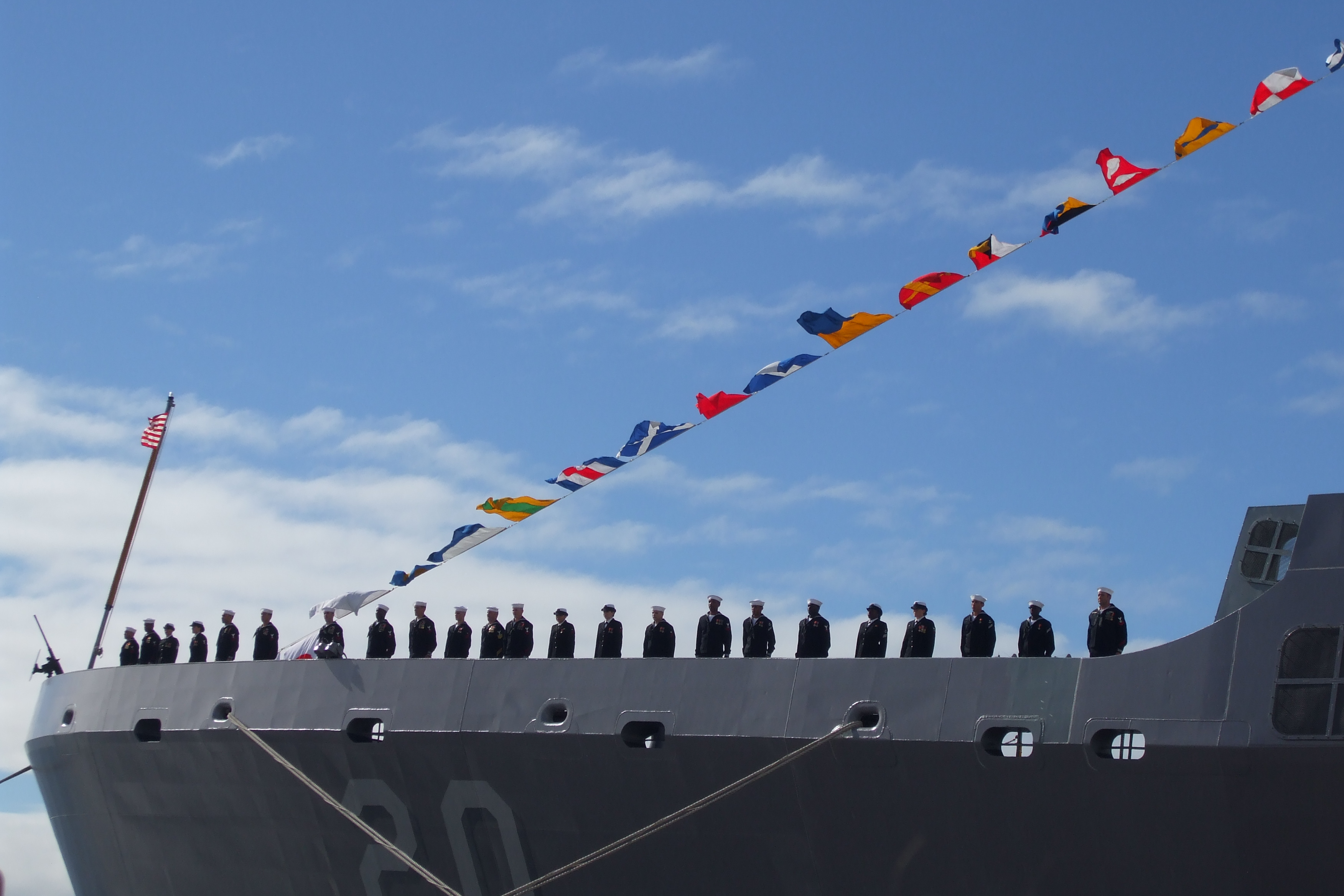 The national ensign is raised abound USS Green Bay (LPD-20), at the ex-Long Beach Naval Shipyard, 24 January 2009. |