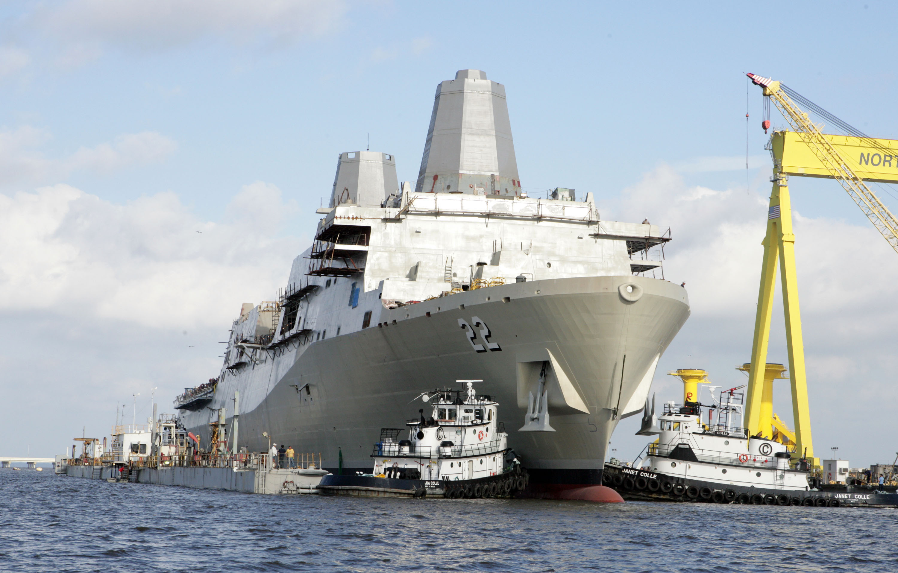 665k | San Diego (LPD-22) launching, 7 May 2010, at Northrop Grumman Ship Systems, Ingalls Shipyard, Pascagoula, MS. facility's floating dry-dock. The ship is now more than 75-percent complete. | Bill Gonyo | |
