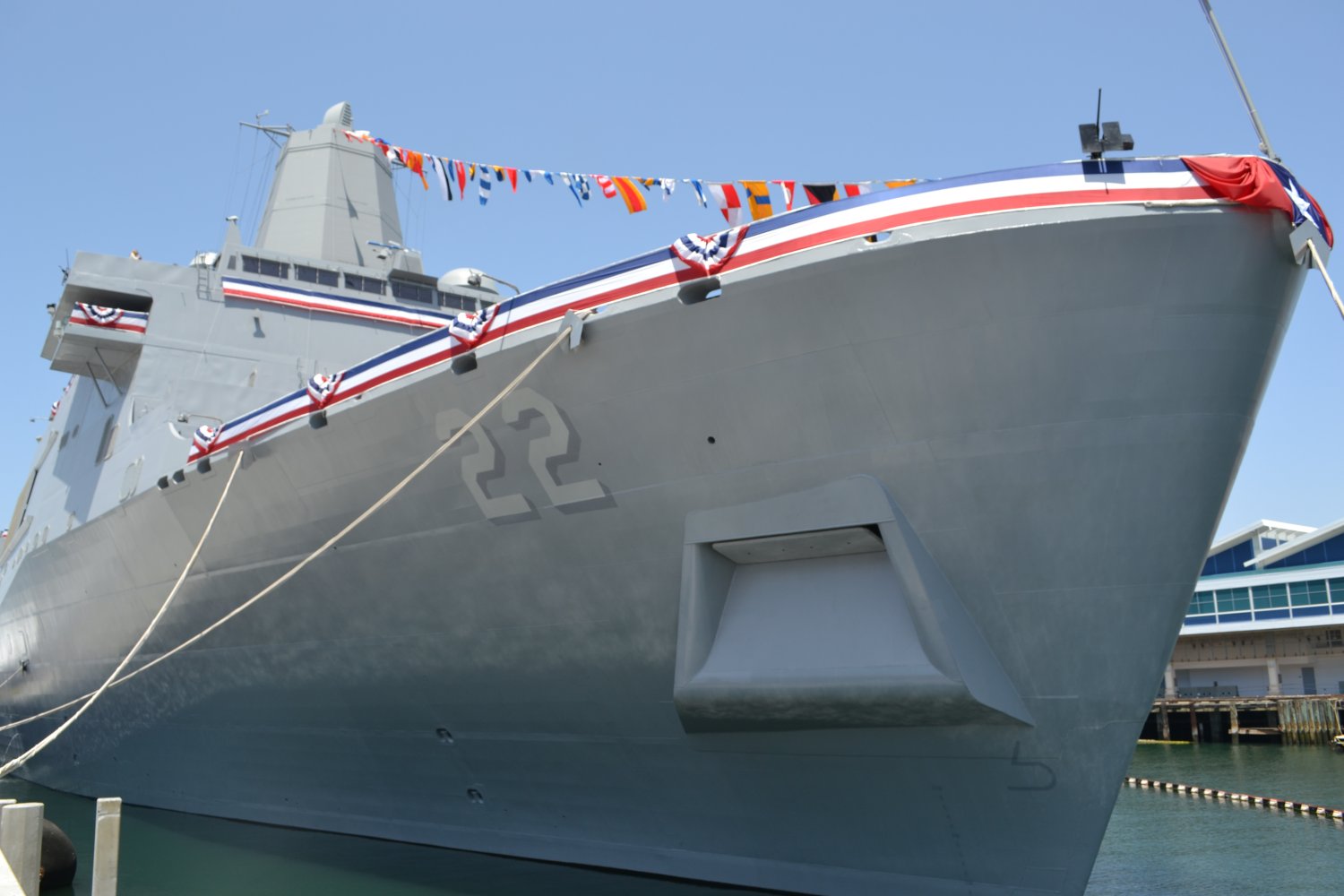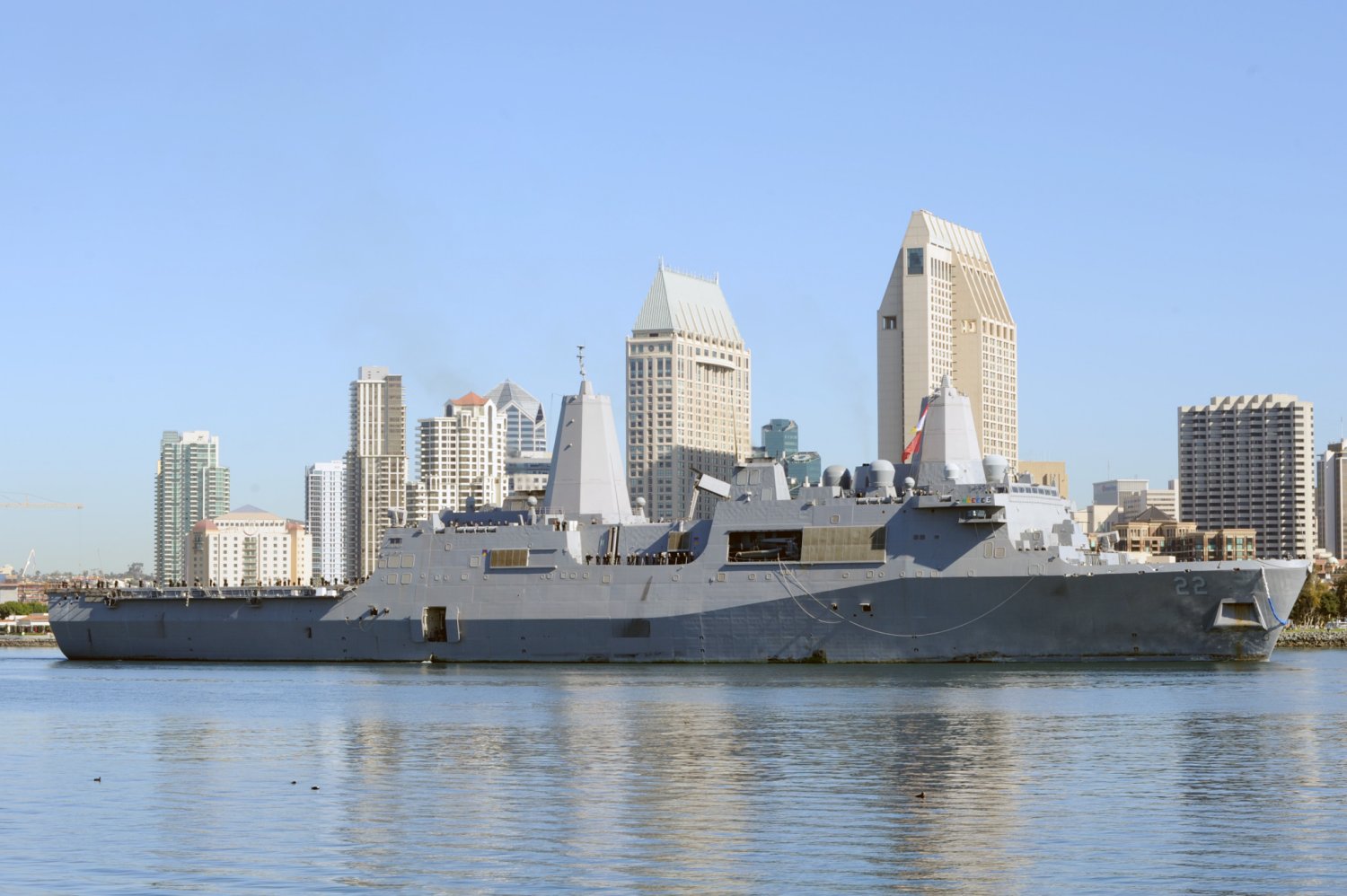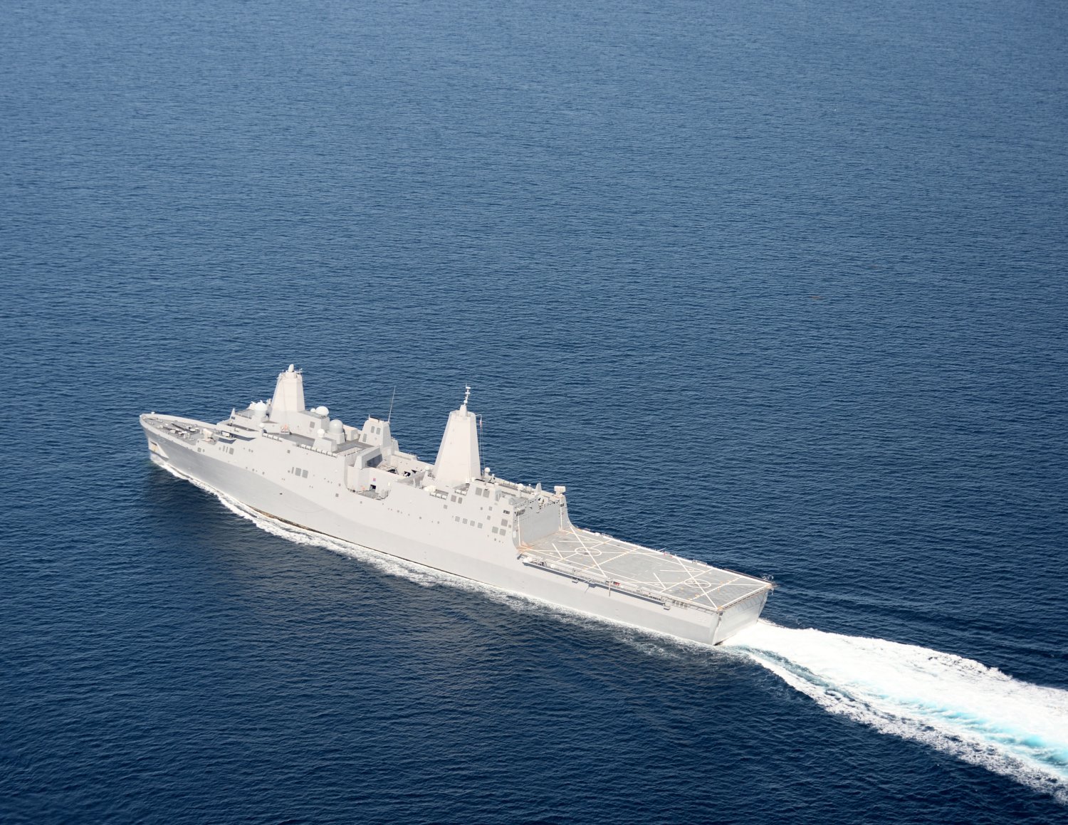 518k | San Diego (LPD-22) successfully completed Navy acceptance trials the week of 18 November 2011, San Diego, the sixth in the LPD 17-class built by Huntington Ingalls Industries Inc.'s Ingalls Shipbuilding division, returned to the yard after a two-day sea trial. Shipbuilders will spend the next month putting the final touches on the vessel before it is delivered in mid-December. Photo courtesy Ingalls Shipbuilding |