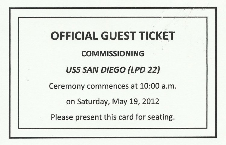 132k | Photos of USS San Diego (LPD-22) commissioning ceremony on 19 May 2012, at Naval Station San Diego, CA.. | Photos by Richard Miller BMCS USNR Ret. | |