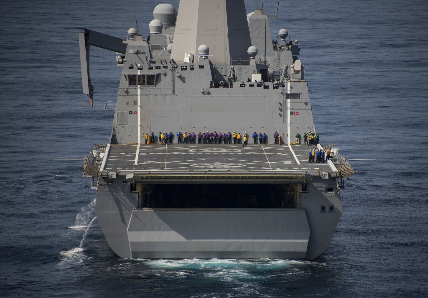 deck of USS San Diego (LPD-22) during interoperability testing in Rim of the Pacific 2016. circa 18 July 2016.