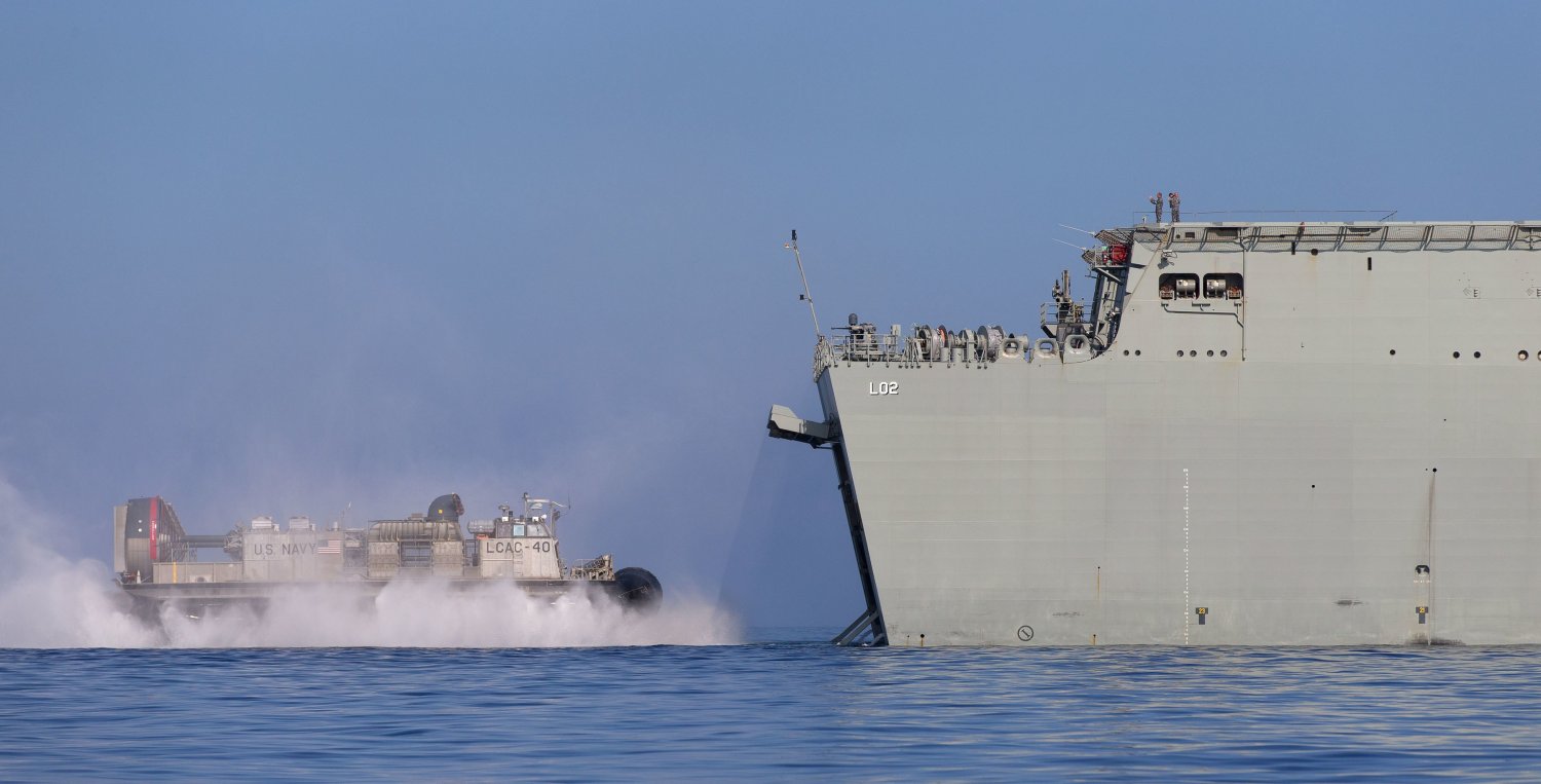 111k | A US Navy Landing Craft, Air Cushion LCAC-40 from USS San Diego (LPD-22) enters the well dock of