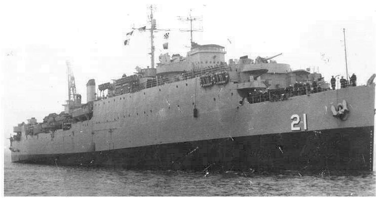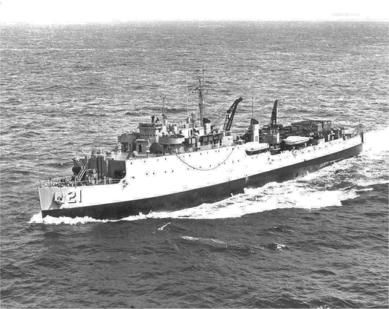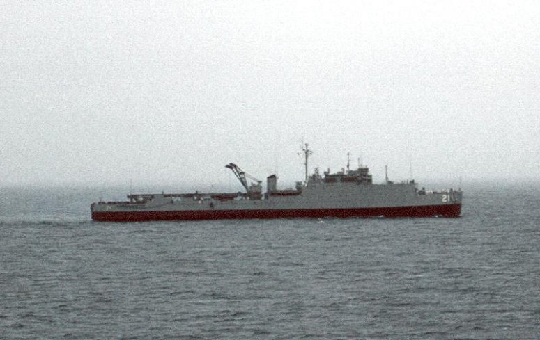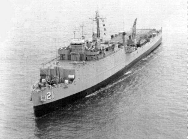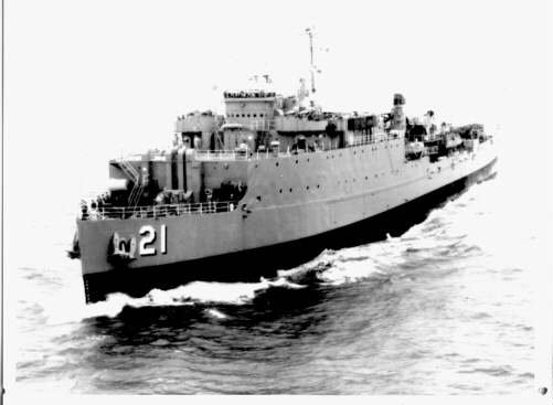 58k | USS Fort Mandan (LSD-21) under way in 1970, location unknown. US Navy photo |