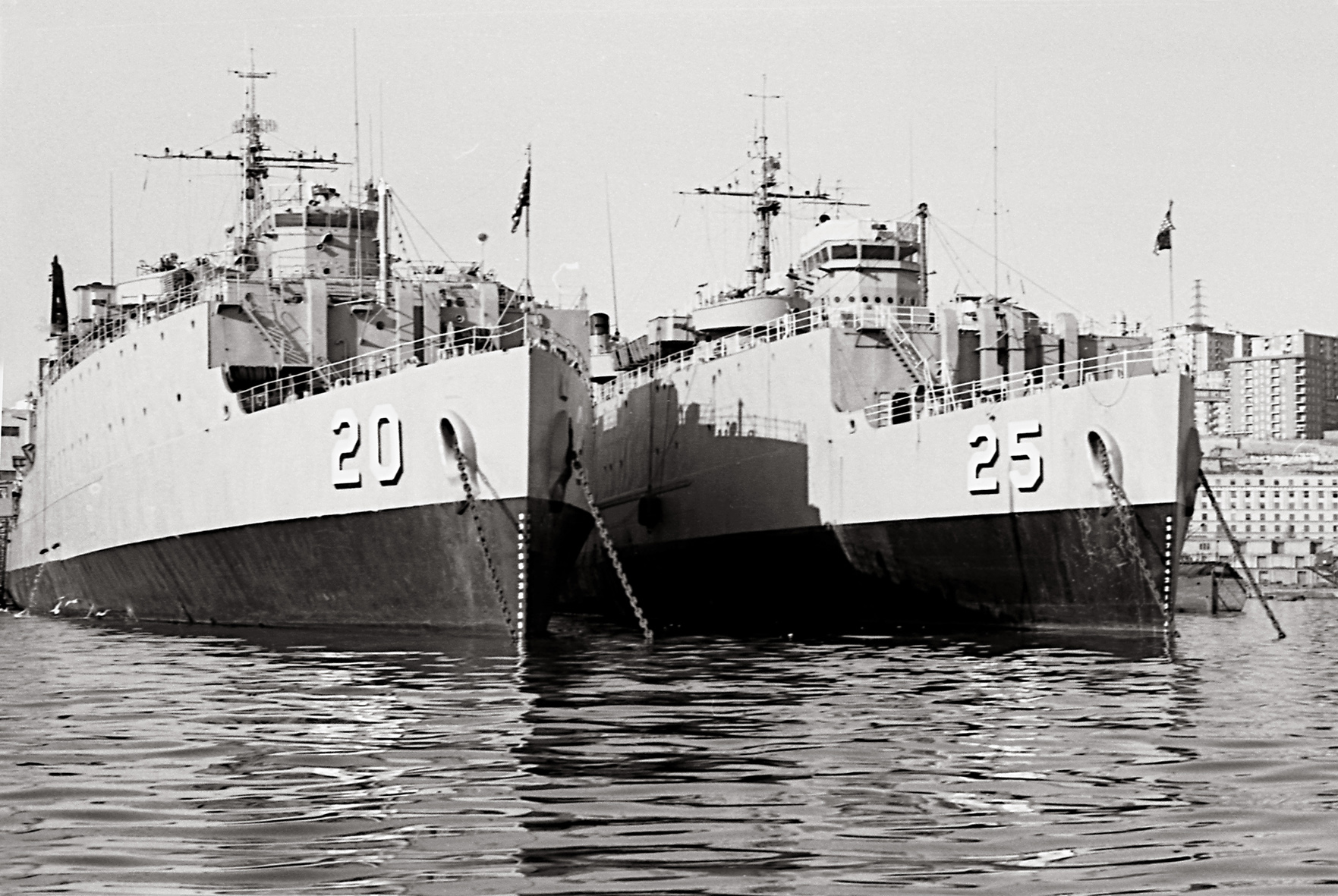 300k | USS San Marcos (LSD-25) and USS Donner at anchor in the harbor at Genoa, Italy, 31 December 1967. | Photos by Carlo Martinelli | |