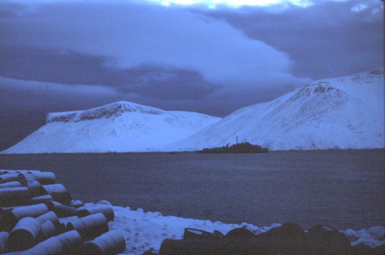 41k | An Arctic sunset photo taken from USS San Marcos (LSD-25) during Arctic resupply operations, summer 1957. | Ron Roller USS San Marcos | |
