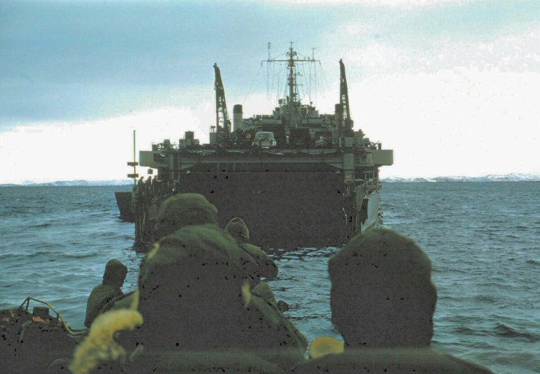 65k | USS San Marcos (LSD-25) crew members returning to the ship during Arctic resupply operations, summer 1957 | Ron Roller USS San Marcos | |