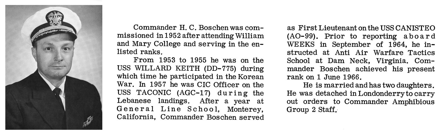 | 07 | LCDR. McCall. Charles DeWitt, USN (USNA 1939) | August 1955 - 15 August 1956 |