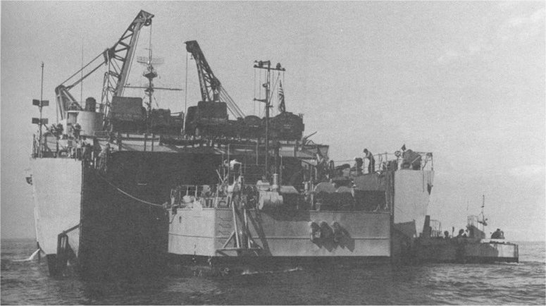 79k | USS Fort Snelling (LSD-30) with her well deck flooded takes aboard LCU-1487, date and location unknown. US Navy photo from "All Hands" magazine July 1957. | Joe Radigan MACM USN Ret. | |