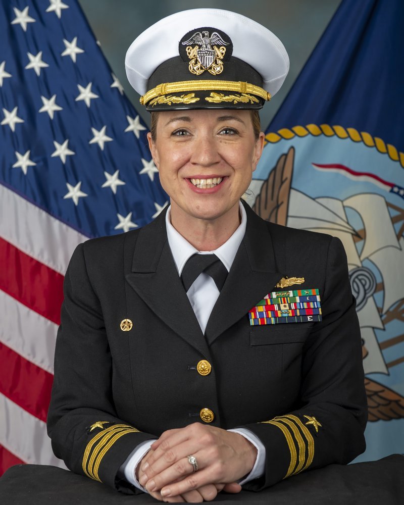 At sea, she was the Executive Officer for USS MONTEREY (CG 61) during their deployment to the European and Middle East theaters. She was Weapons and Combat Systems Officer in USS LABOON (DDG 58) during her maiden Ballistic Missile Defense deployment in support of Operations Sharp Sentry and Atlantic Sentry and subsequent mid-life modernization. She served as Assistant Operations Officer for Commander Destroyer Squadron FIVE ZERO while conducting critical infrastructure protection in support of Operation Iraqi Freedom. She served a Plankowner tour in USS CHUNG-HOON (DDG 93) as First Lieutenant, Combat Fires Division Officer, and Auxiliaries Officer during the ship’s deployment to support Operation Enduring Freedom.