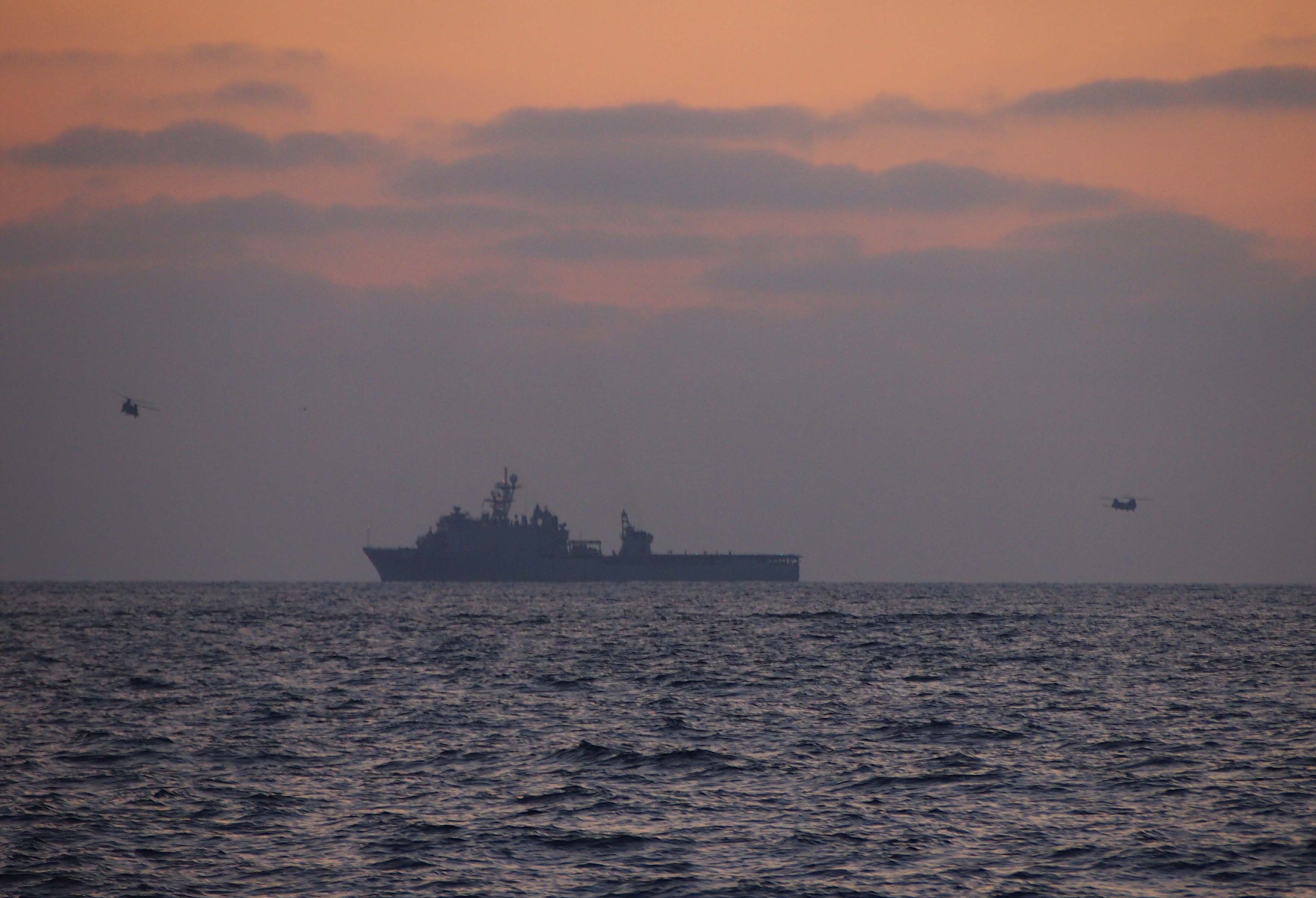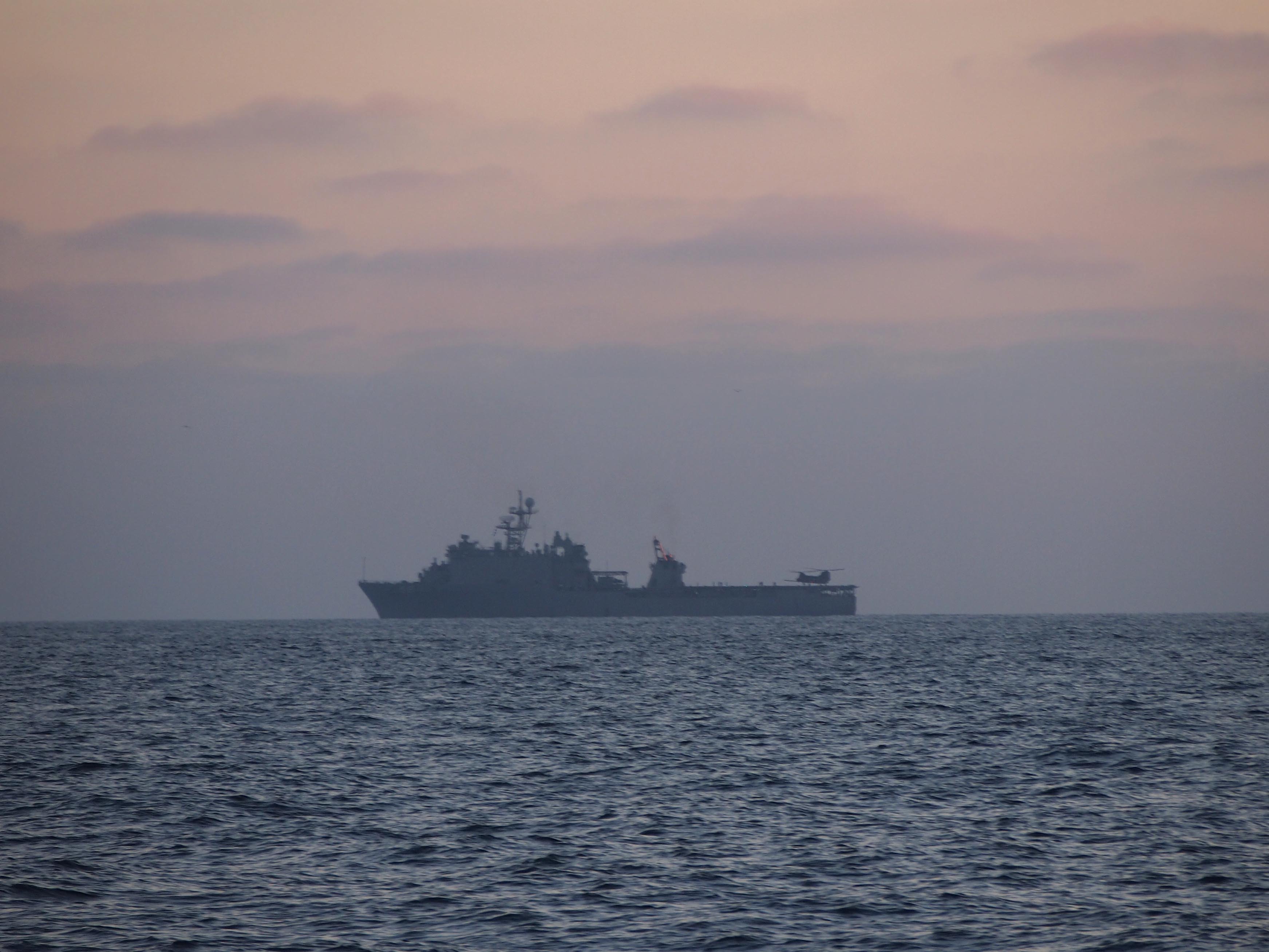 392k | USS Pearl Harbor (LSD 52) conducting helicopter operations at sunset off San Diego, 21 October 2013. | Photos by John Gerty | |