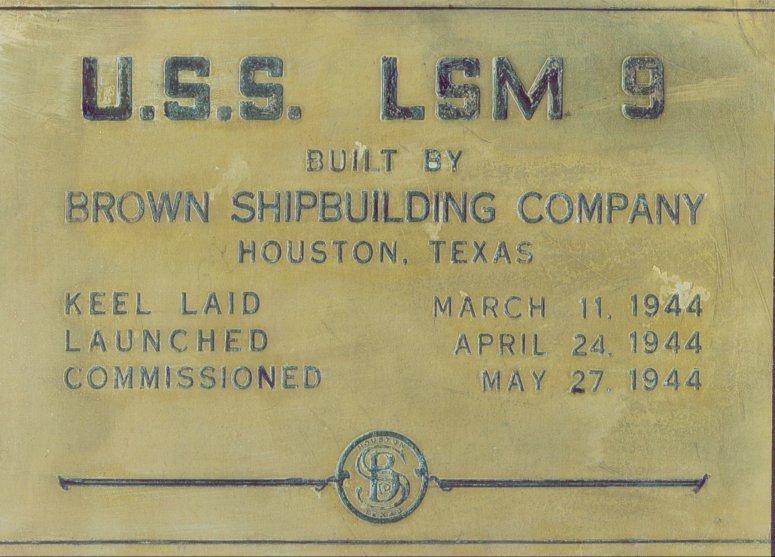 98k | USS LSM-9's brass nameplate. Currently in the collection of Raymond A. Biswanger, Jr., LT. USN Ret. | Raymond A. Biswanger, Jr., Ph.D., LT. USN Ret. USS LSM-9 | ||