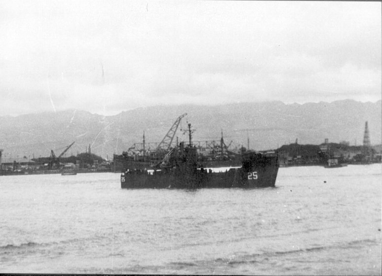 59k | USS LSM-25 under way near Hickam Field Wharf, Pearl Harbor, T.H., 21 September 1945. | Raymond A. Biswanger, Jr., Ph.D., LT. USN Ret. USS LSM-9 | |