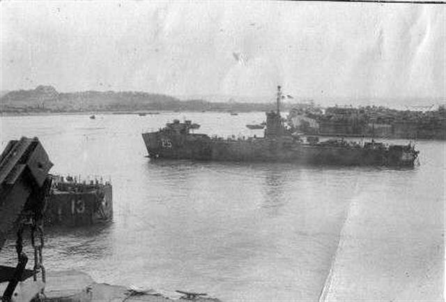 117k | USS LSM-154, USS LSM-312 and USS LSM-25, beached at Saipan, Marianas Islands to take on supplies, date unknown. | Dan Kovalchik in honor of his father, SK2 John "Tiny" Kovalchik USS LSM-154 | |
