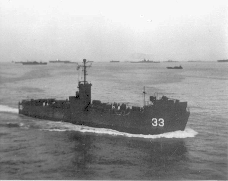 53k | USS LSM-33 under way in a fleet anchorage area, date and location unknown. | Lewis Williams to the USS LSM / LSMR Association Ralph Donutalo to the USS LSM / LSMR Association |