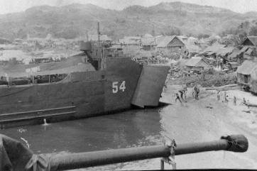 17k | USS LSM-54 beached, during the Luzon operation, circa January 1945. | Ronnie Ward for his father Durward Joiner Ward, Coxswain USN USS LSM-259 | |
