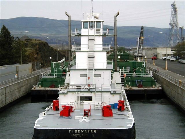 63k | Towboat Tidewater, in the lock at The Dalles Dam. date unknown. | Ron Gray/Captain | |