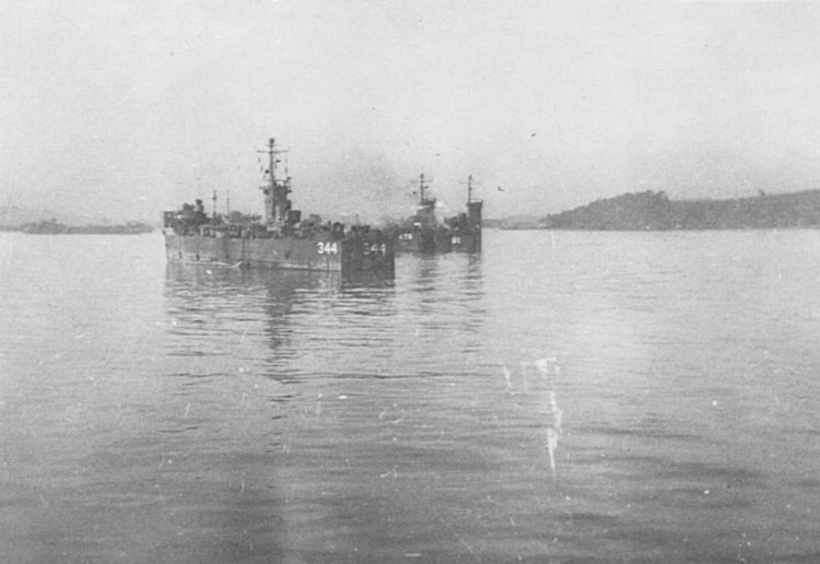 54k | Left to right, USS LSM-344, USS LSM-476, and USS LSM-80 at Sasebo, Kyushu, Japan, 22-24 September 1945. | Hugh L. Hudson, Jr., RM/2c, LSM-467, collection, photo number 080 | |